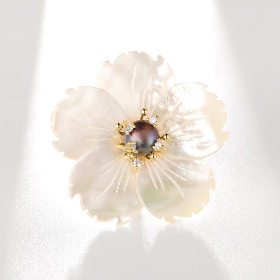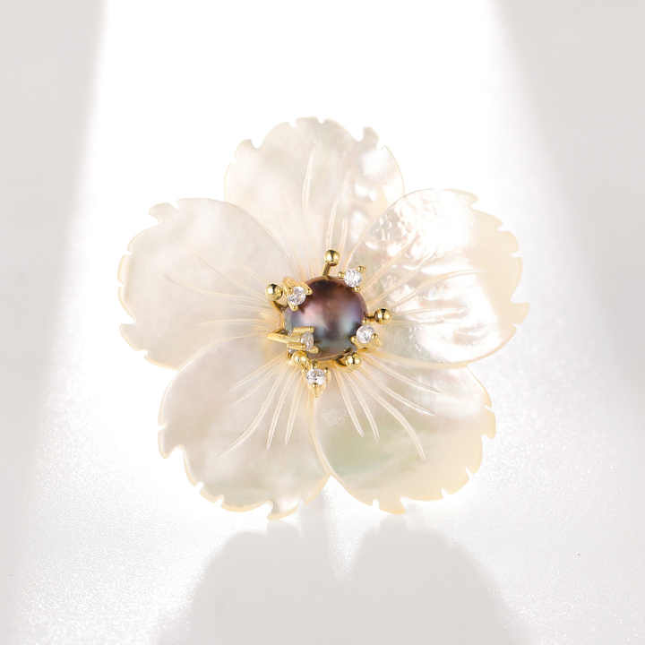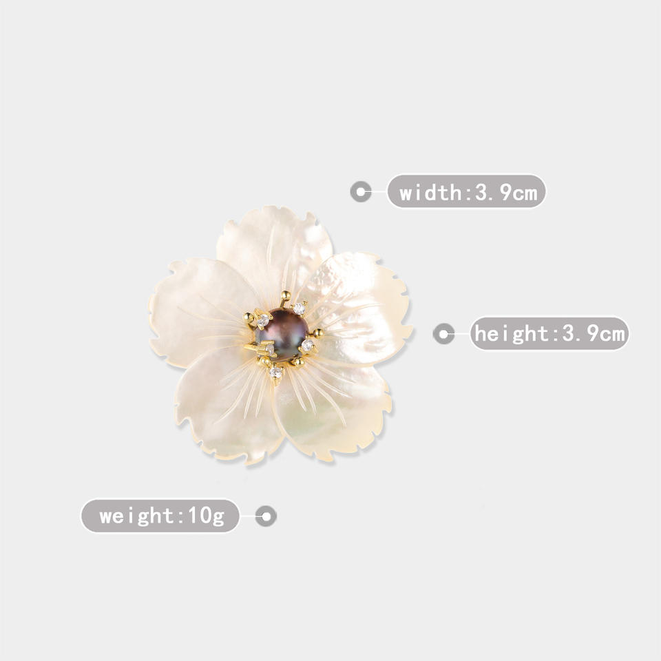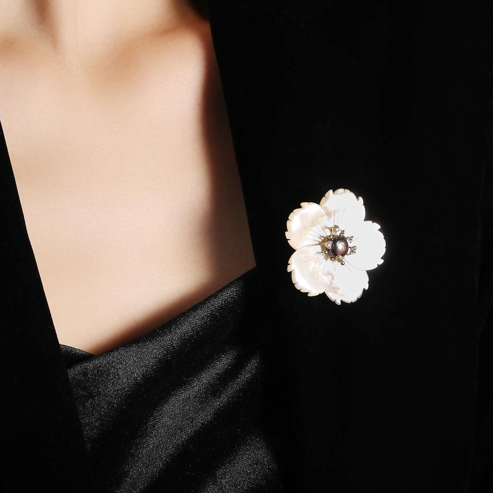 เข็มกลัดดอกคามิลเลียประดับมุกน้ำจืดและเซอร์คอนสไตล์เกาหลี พร้อมเปลือกหอยธรรมชาติแบบบาโรก ลดราคาพิเศษสำหรับงานแต่งงาน
