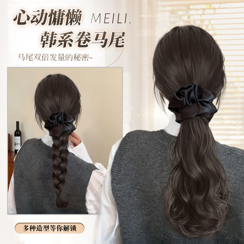 วิกผมหางม้าสไตล์เกาหลีแบบม้วน พร้อมกิ๊บติดผม ถักเปียต่ำแบบธรรมชาติ สีดำ 140 กรัม เส้นผมทนความร้อนสูง