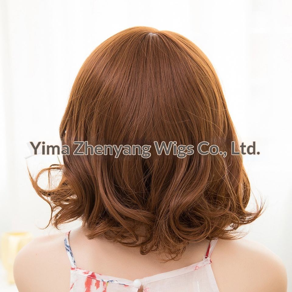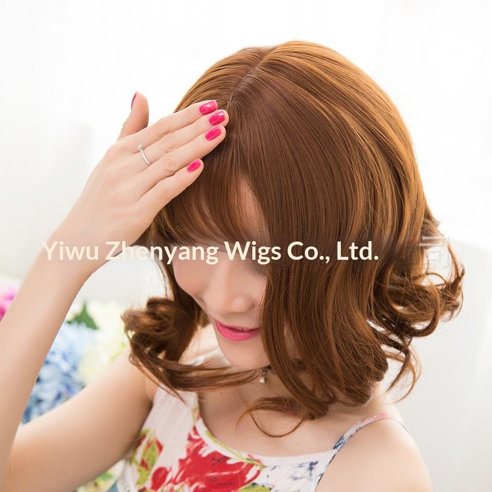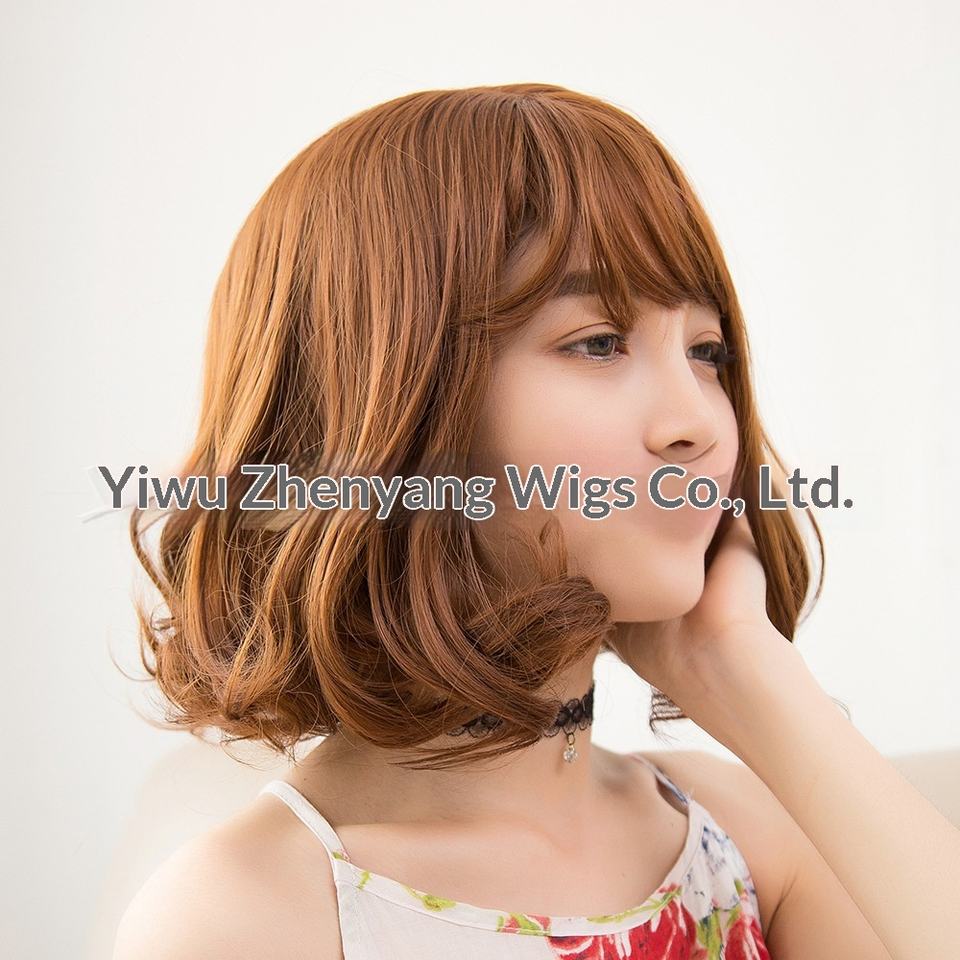 วิกผมสั้นแบบม้วนทรงผมหยิกสไตล์เกาหลีสำหรับผู้หญิง แบบติดกาวในตัว ทรงผมเปียดอกแพร์ พร้อมหน้าม้า ผลิตในเจ้อเจียง