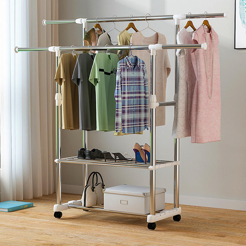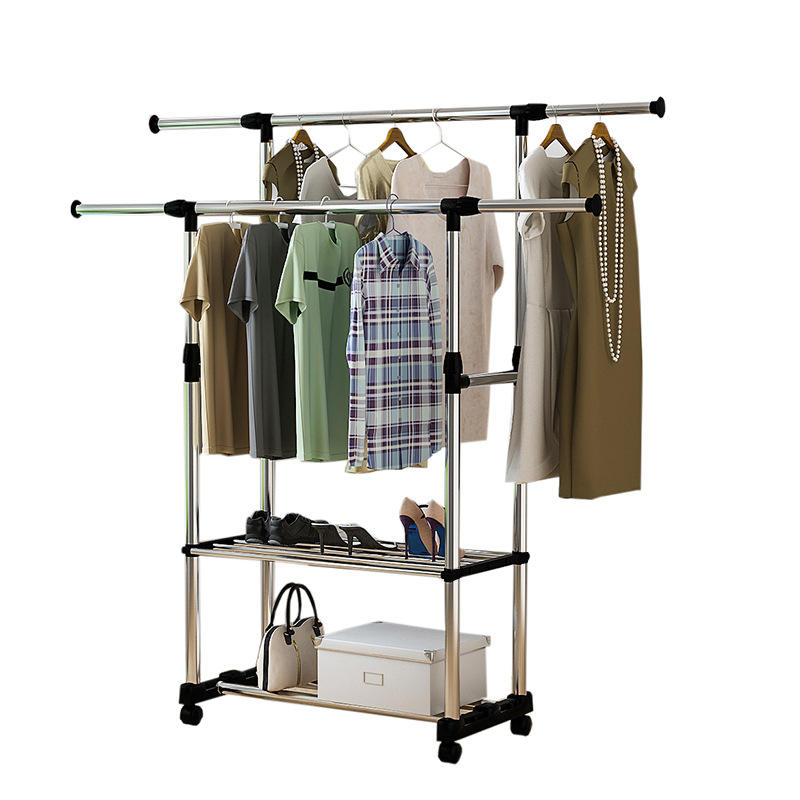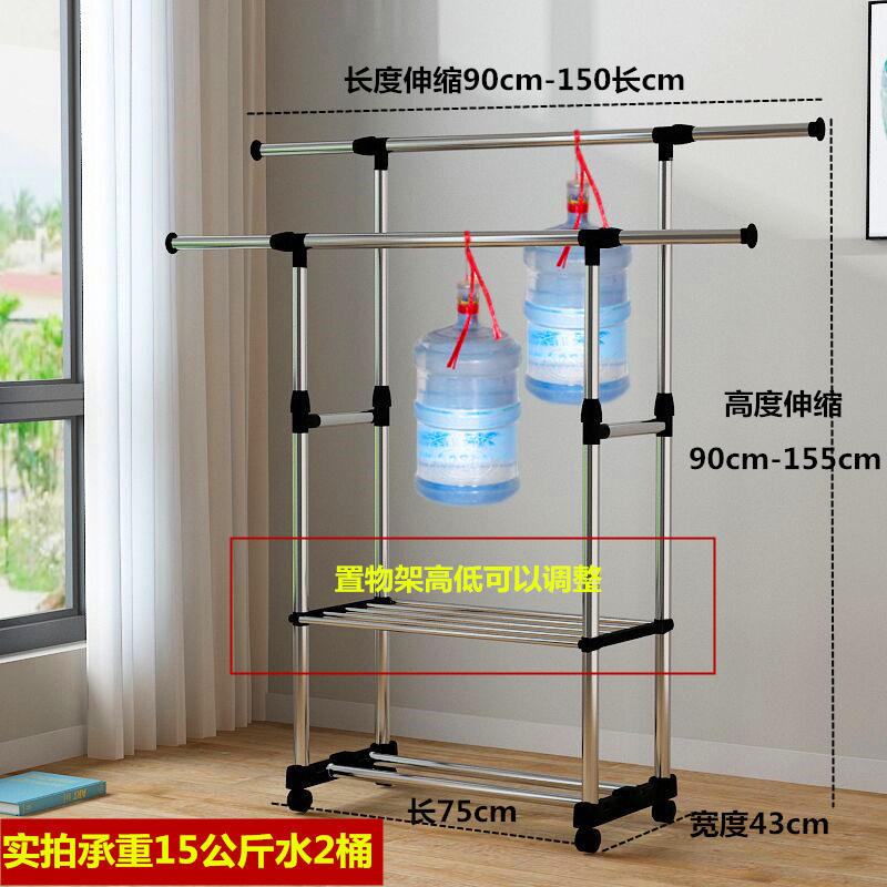 ราวตากผ้าสแตนเลสแบบตั้งพื้นสไตล์เกาหลี แบบสองเสา พร้อมล้อเลื่อน พับเก็บได้ สำหรับห้องนอน ระเบียง