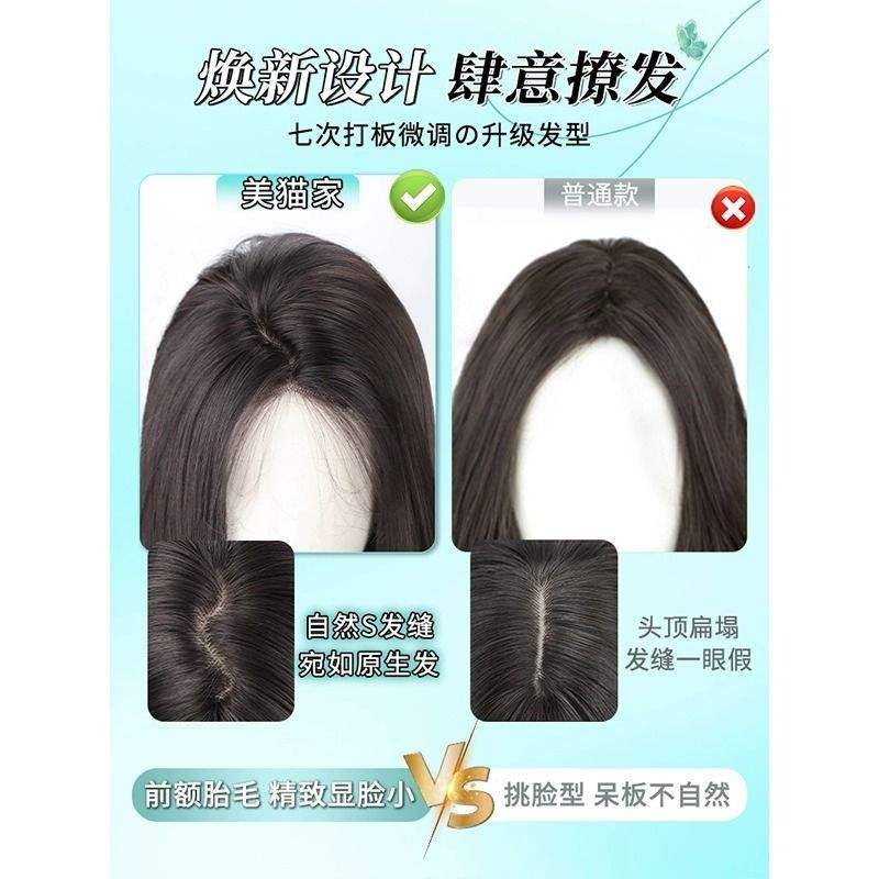 วิกผมสไตล์เกาหลีแบบเต็มศีรษะ ผมยาวตรงสีดำ แสกกลาง ดูเป็นธรรมชาติ ถักด้วยมืออย่างประณีต ไร้รอยต่อ วิกผมฟูฟ่องสำหรับผู้หญิง