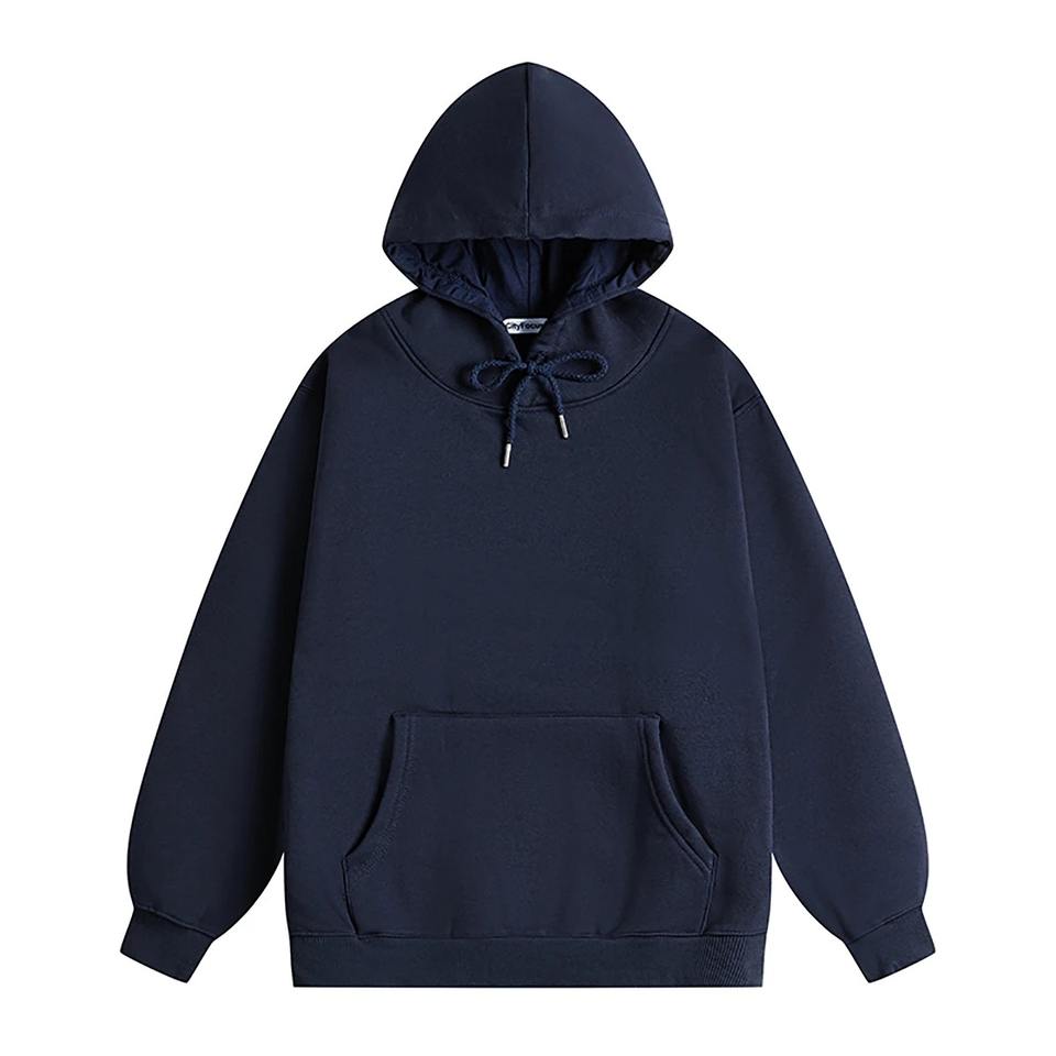 เสื้อสเวตเตอร์ถักมีฮู้ดสไตล์เกาหลีสำหรับผู้ชายเสื้อกันหนาวแบบสวมหัวทรงโอเวอร์ไซส์ลำลองให้ความอบอุ่นมีสไตล์สีทึบ