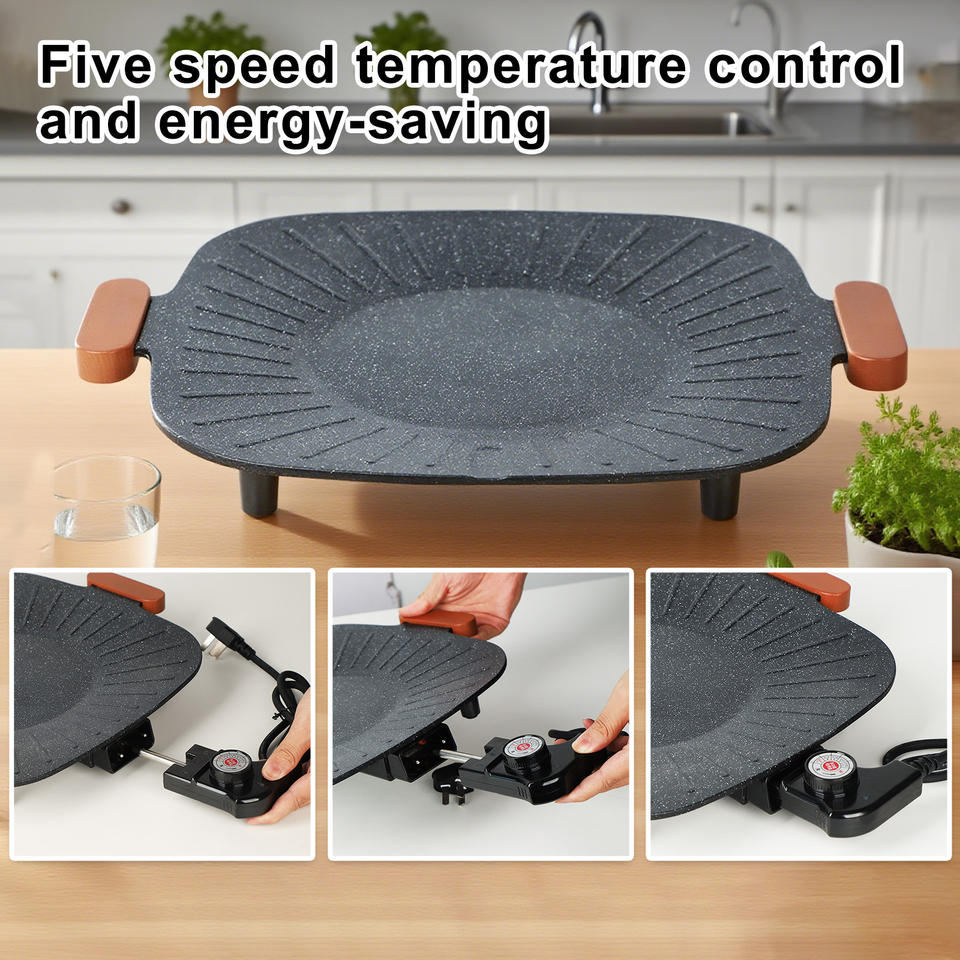 Dismountable Oil Collector, Non-Stick Cooking Surface, Temperature Control, Smokeless