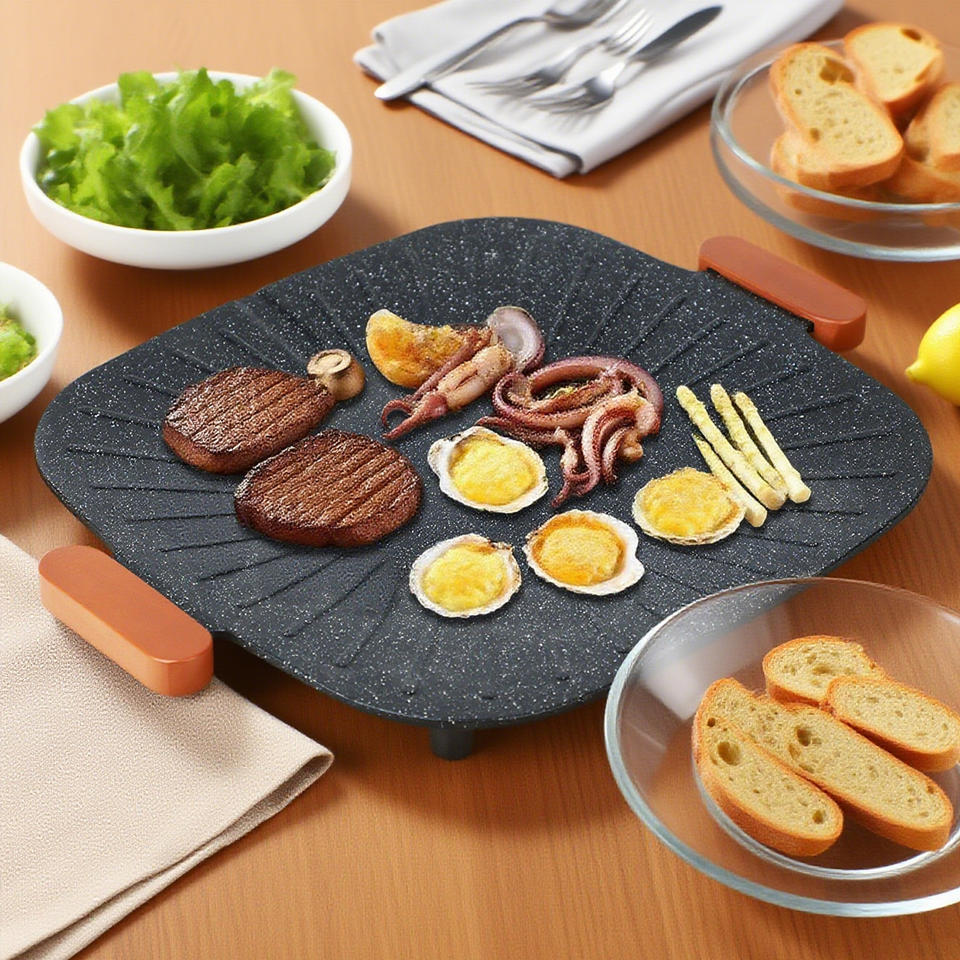 Korean-Style Indoor Electric Grill Pan Multi-Function 32cm Aluminum Die-Cast Korean Style Anti-Scald Handle Even Heating