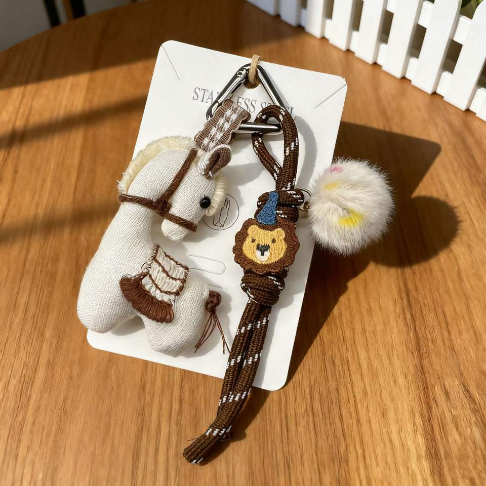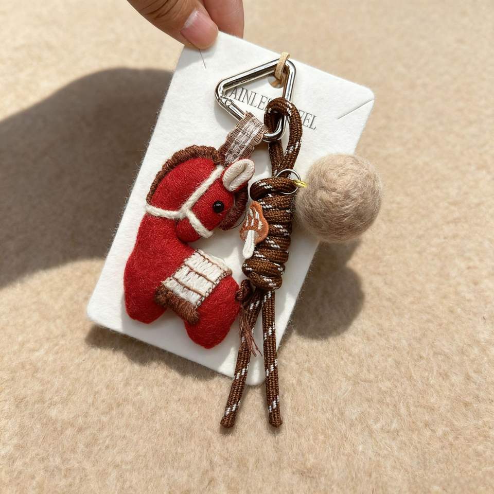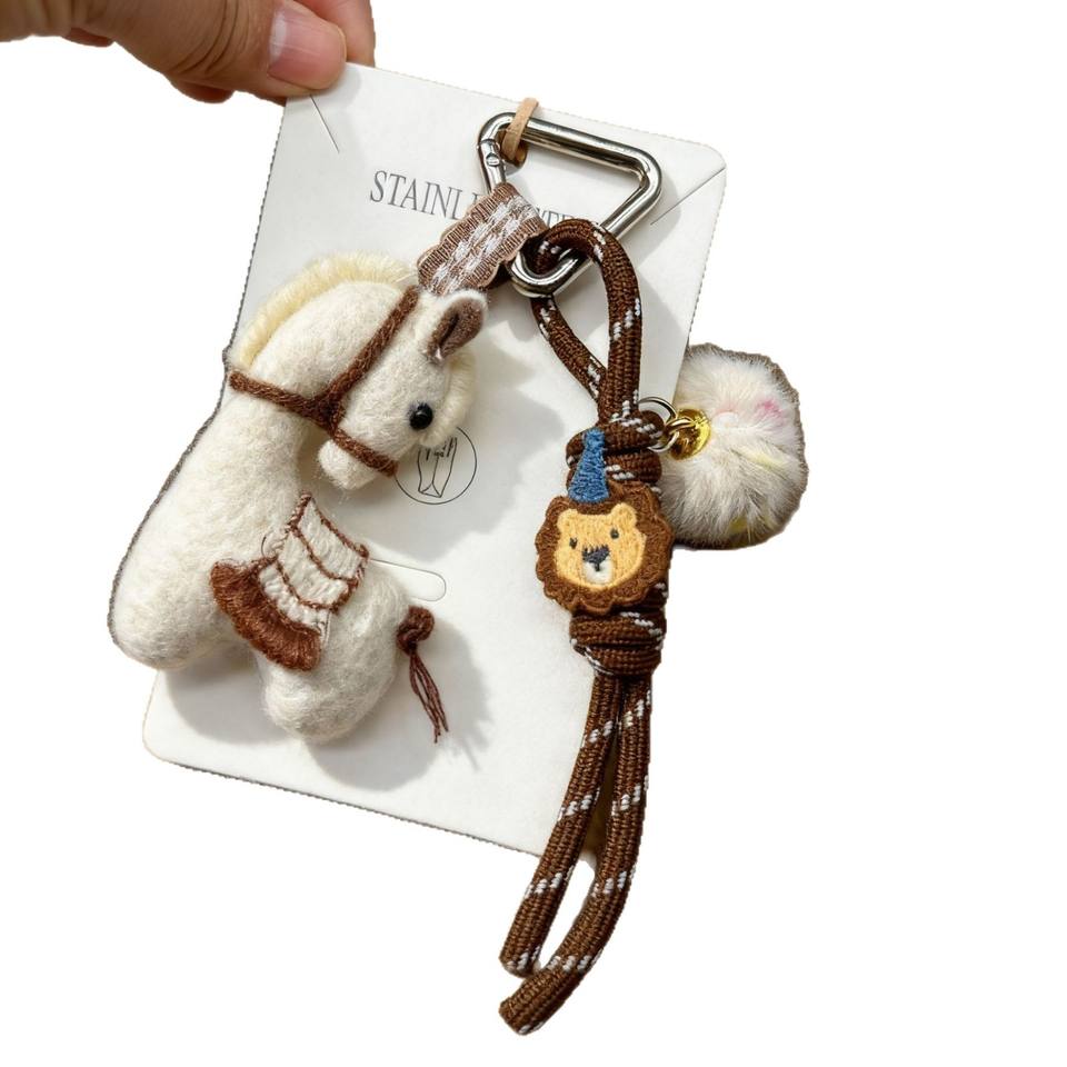 ม้าตัวเล็กสไตล์เกาหลีลายป่าไม้หรูหราเครื่องประดับกระเป๋าจี้ห่วงโซ่พวงกุญแจตุ๊กตาน่ารัก