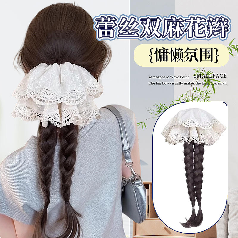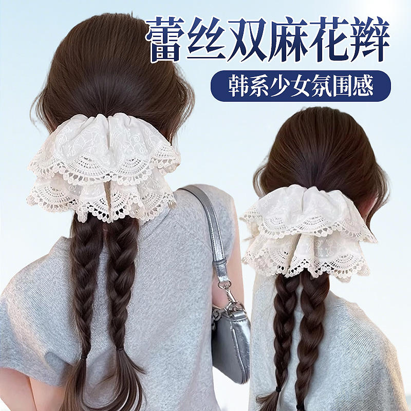 ผมหางม้าคู่ลูกไม้สไตล์เกาหลีสำหรับฤดูร้อน [สีน้ำตาลและสีดำ]
