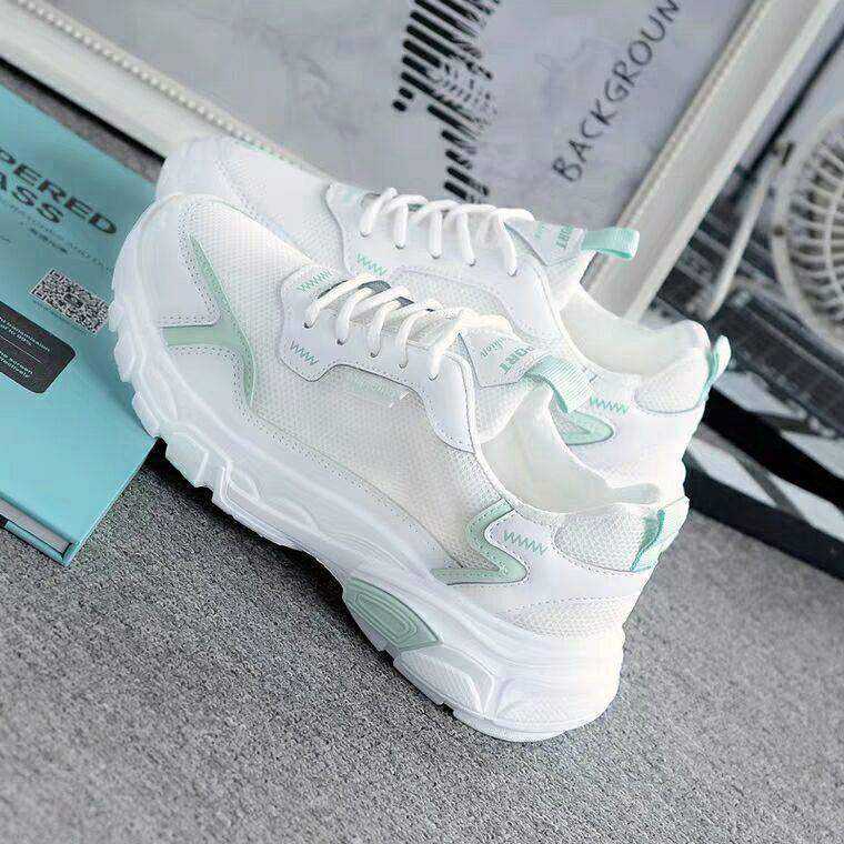 รองเท้าผ้าใบสีขาวสไตล์เกาหลีแบบเรียบง่าย ระบายอากาศได้ดี สำหรับผู้หญิง รุ่นใหม่ปี 2026 พื้นหนา รองเท้าวิ่ง แมทช์ได้กับทุกชุด รองเท้าแฟชั่น