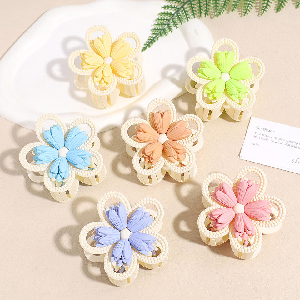 กิ๊บติดผมทรงดอกไม้แบบด้านสไตล์เกาหลี 5 กลีบ กิ๊บพลาสติกแบบหนีบ ขายส่งจำนวนมาก อุปกรณ์เสริมผมกันลื่นสำหรับผู้หญิง