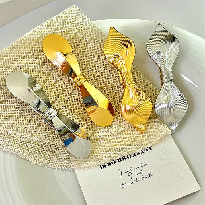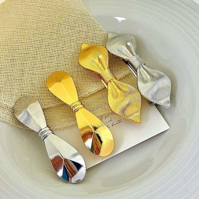 กิ๊บติดผมโลหะสไตล์เกาหลีประดับมุกสำหรับผู้หญิงและเด็กผู้หญิง กิ๊บติดผมรูปโบว์ประดับเพชรหรูหราสไตล์ฝรั่งเศส