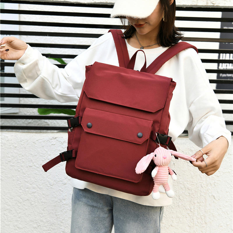 กระเป๋าเป้สไตล์มินิมอลแบบเกาหลีสำหรับนักเรียนมัธยมปลายและมหาวิทยาลัย ความจุขนาดใหญ่ พร้อมกลิ่นอายวินเทจสไตล์โมริเกิร์ล บุด้วยไนลอน