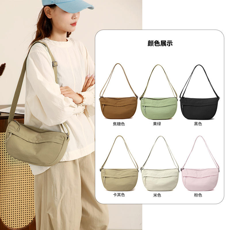 กระเป๋าสะพายข้างสไตล์มินิมอลสไตล์เกาหลี กระเป๋าสะพายข้างไนลอนความจุขนาดใหญ่ กันน้ำ สำหรับชุดประจำวัน ฤดูใบไม้ผลิ 2025