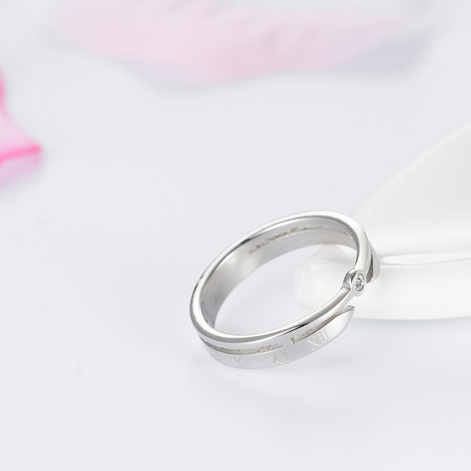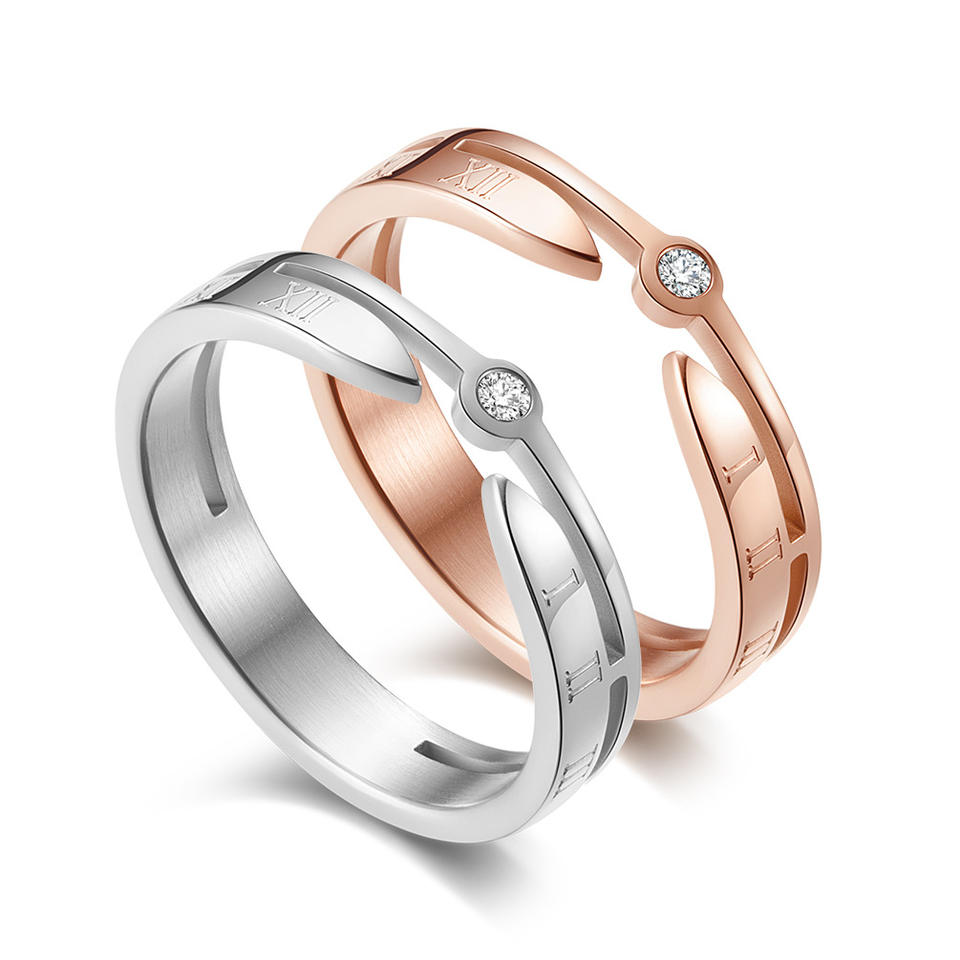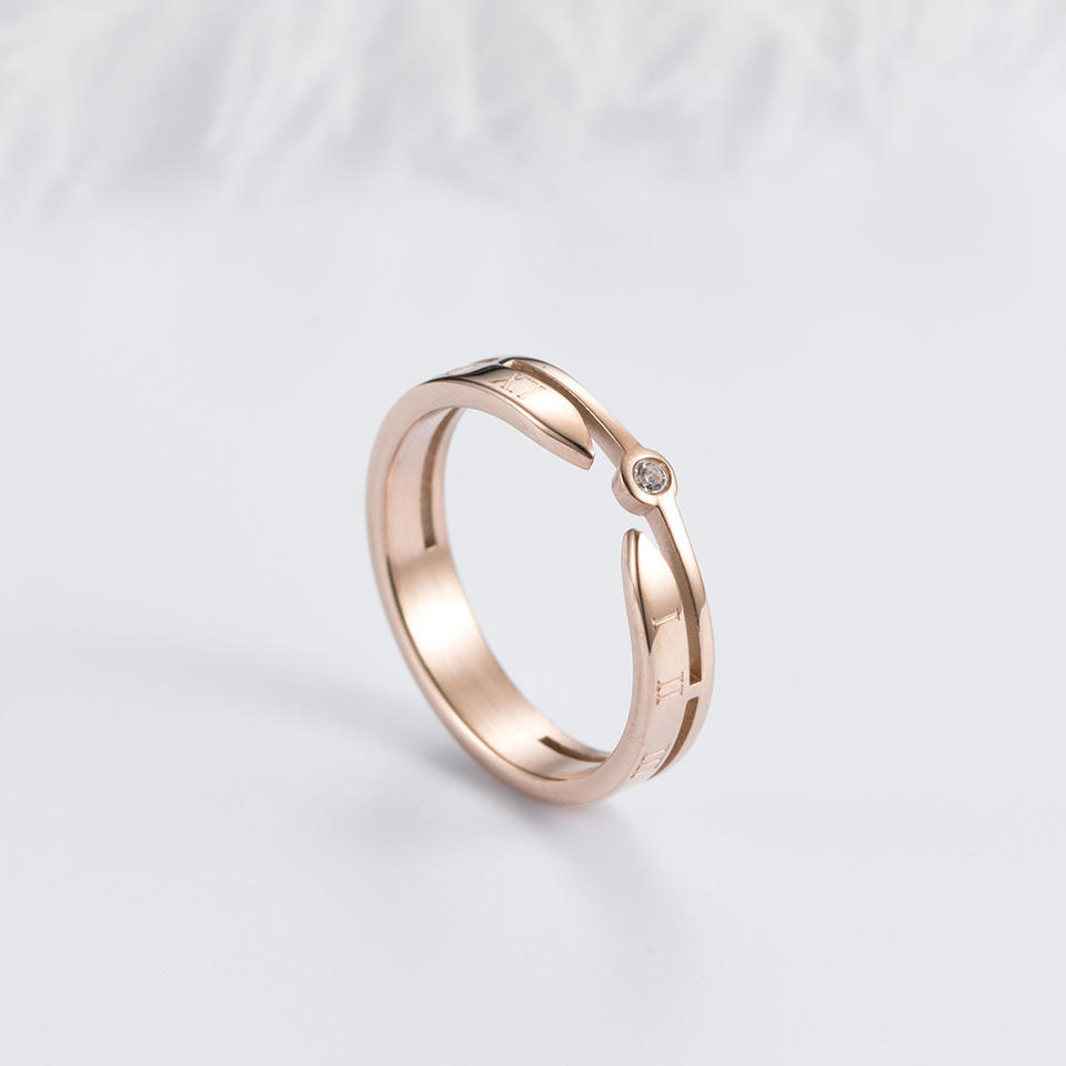 แหวนเพชรเลขโรมันสไตล์มินิมอลเกาหลี สีโรสโกลด์ วัสดุเหล็ก สำหรับทุกเพศ เหมาะสำหรับใส่ทุกวัน