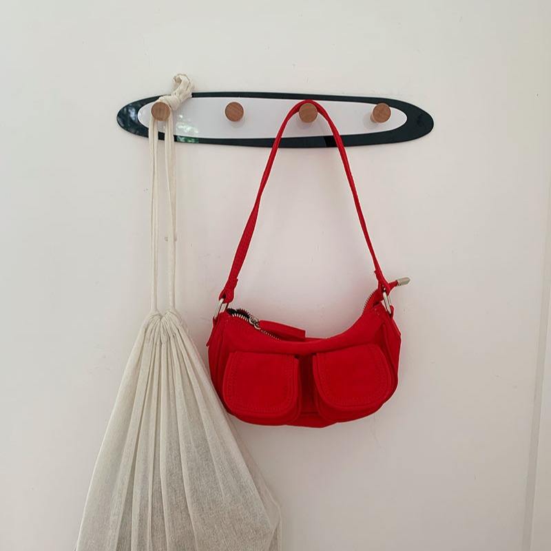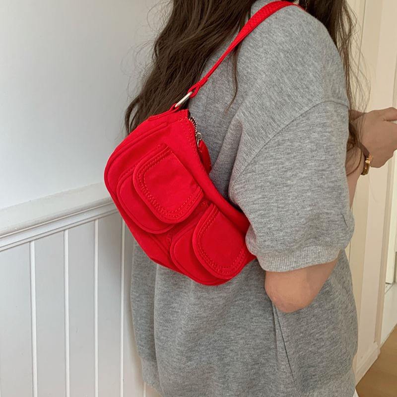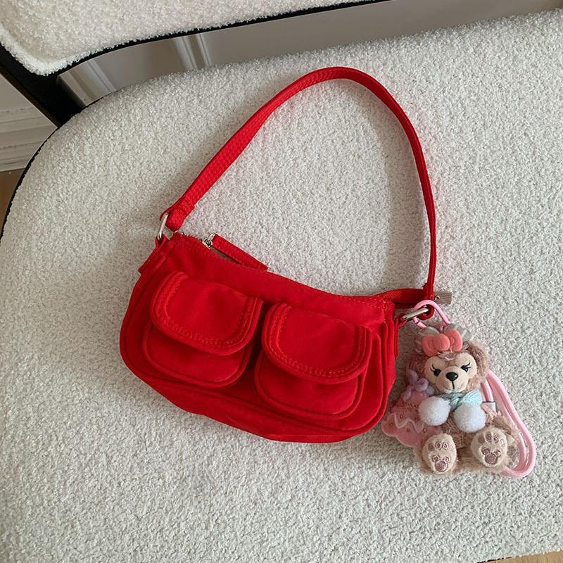 กระเป๋าสะพายไหล่ไนลอนหลายช่องสไตล์เกาหลี ปิดด้วยซิปสีแดง พิมพ์ลายการ์ตูน ใช้ได้ทุกวัน