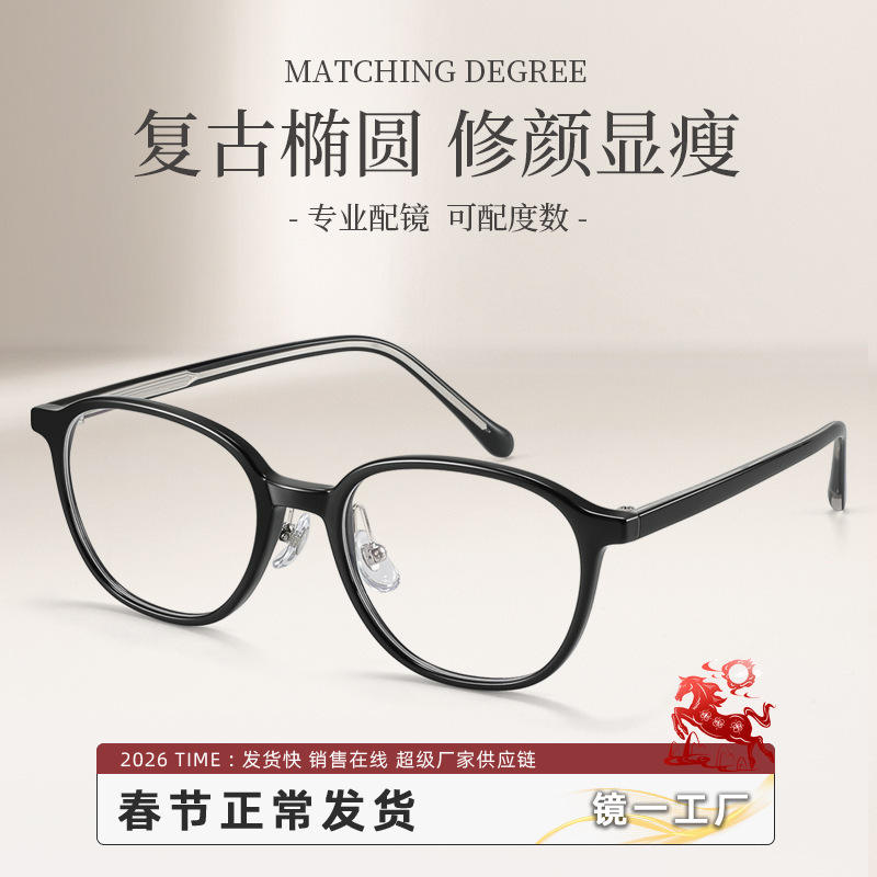 กรอบแว่นตาทรงวงรีสไตล์เกาหลีสำหรับผู้หญิงเลนส์ป้องกันรังสียูวีพีซีแบบเต็มกรอบ 86004