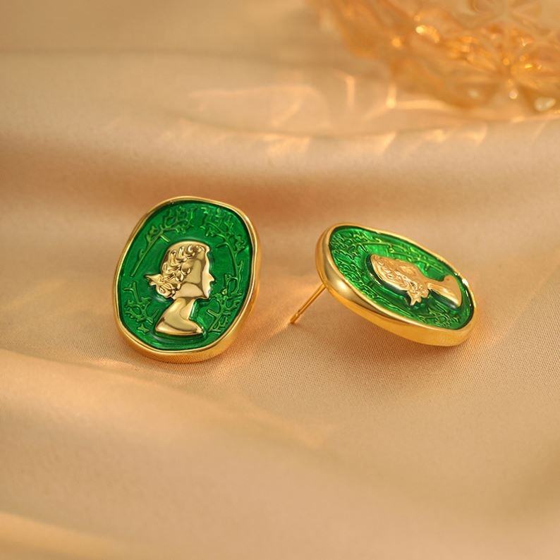 ต่างหูแบบเกาหลีสไตล์เรโทร ชุบทองบนทองแดง ประดับด้วยพลอยเซอร์คอนทรงเจ้าหญิง ดีไซน์ลายนูนรูปทรงเรขาคณิต เหมาะสำหรับเป็นของขวัญ