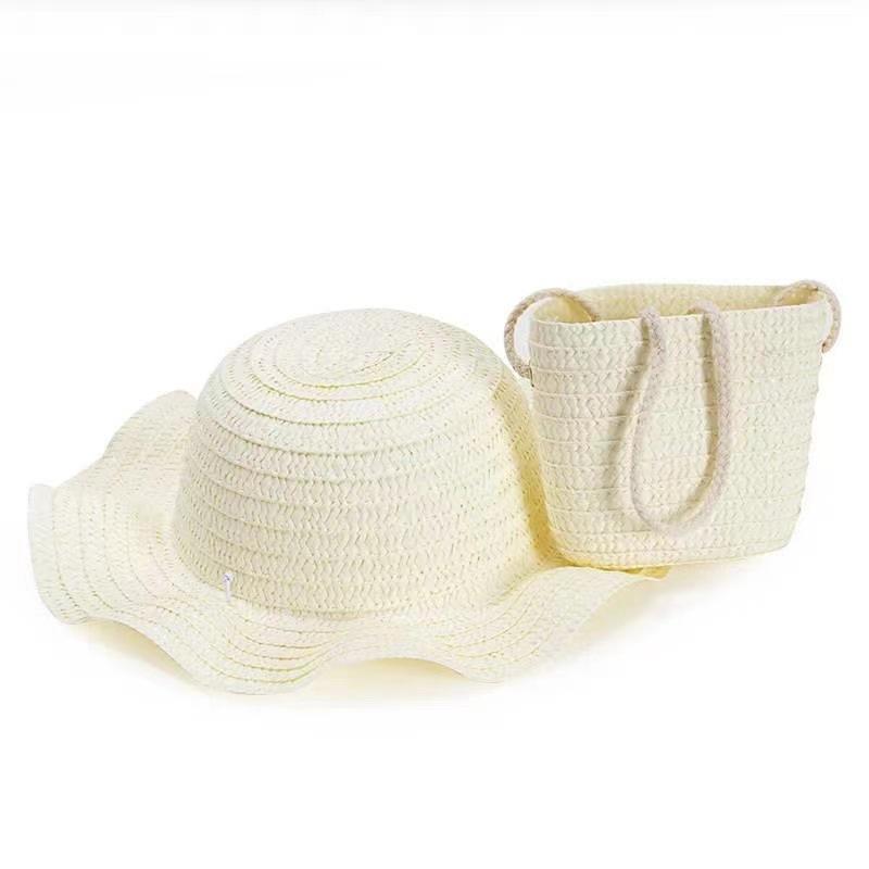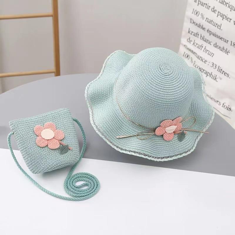 หมวกปีกกว้างลายทางสไตล์เกาหลี พร้อมกระเป๋าสะพายข้างลายดอกไม้โบว์น่ารัก สำหรับเด็ก ระบายอากาศได้ดี เหมาะสำหรับกิจกรรมกลางแจ้ง ท่องเที่ยว ตกปลา และใช้ในชีวิตประจำวัน