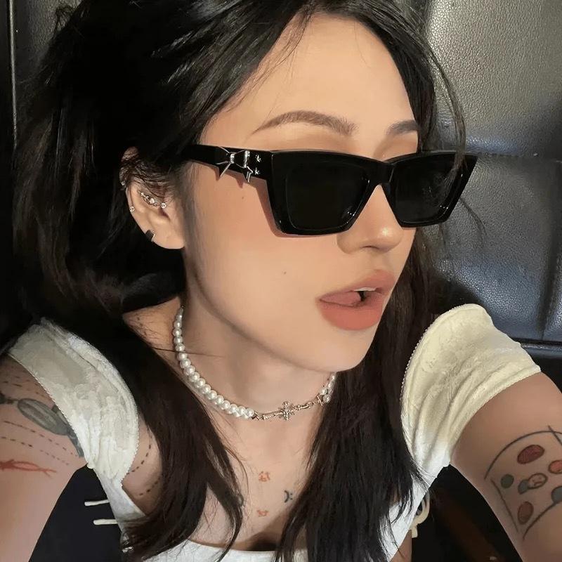 แว่นกันแดดสไตล์เกาหลีกรอบพีซีสีดำป้องกันรังสียูวี 400 ดีไซน์โบว์ตาแมวแฟชั่นสตรี Y2K แว่นกันแดดอินเทรนด์ประเภท 3