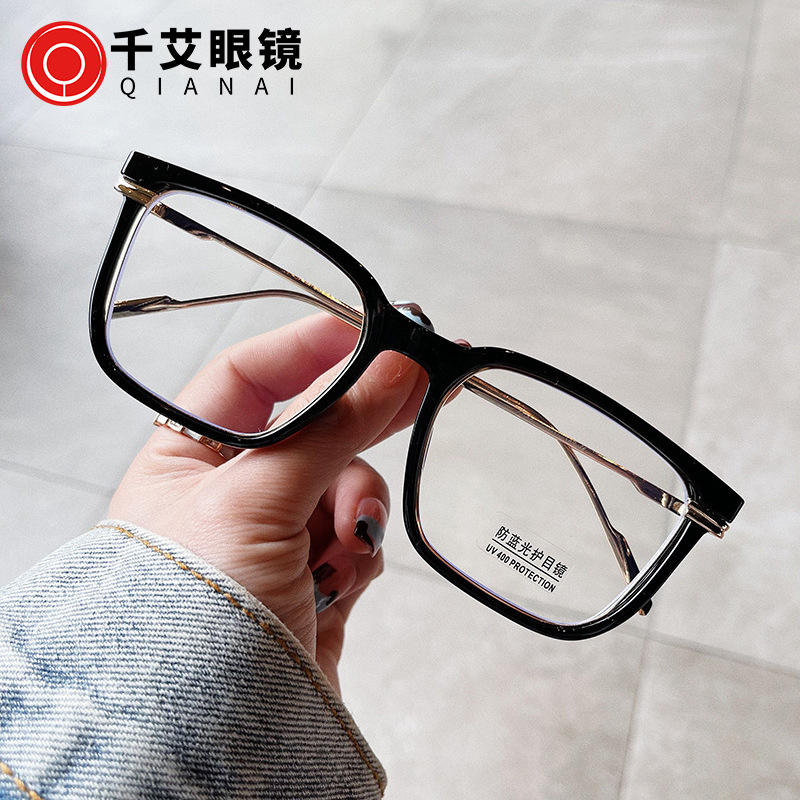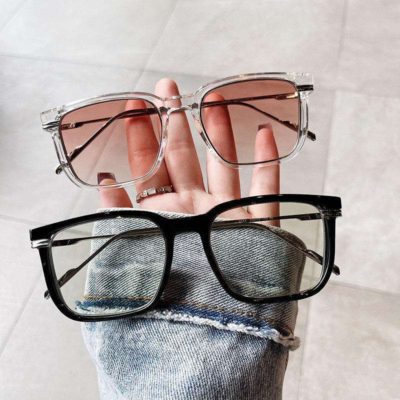 แว่นกันแดดสไตล์เกาหลีสำหรับผู้ชายกรอบสีดำพร้อม UV400เน้นสีทองกรอบพลาสติกและโลหะ H6 5544