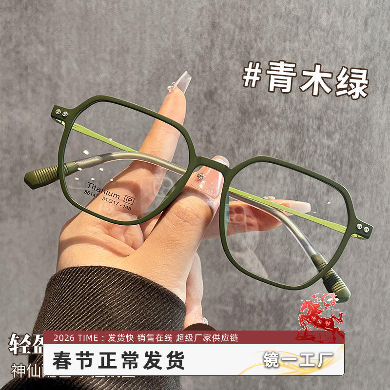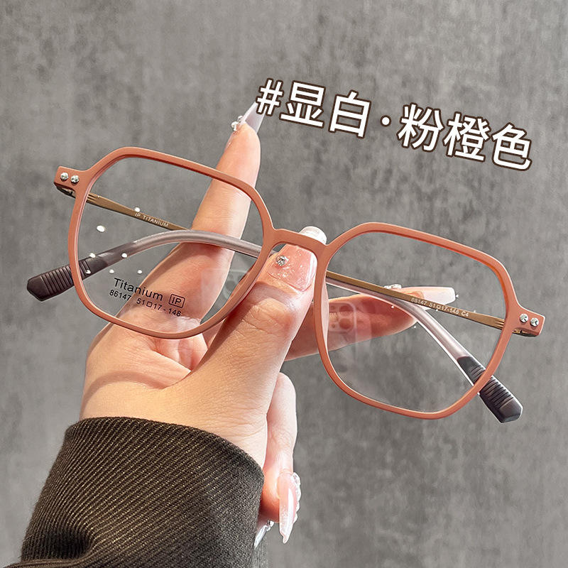 กรอบแว่นตาไทเทเนียมสไตล์เกาหลี 86147 ทรงสี่เหลี่ยมกรอบเต็มน้ำหนักเบาเลนส์พลาสติกสำหรับใบหน้ากลมสี่เหลี่ยม