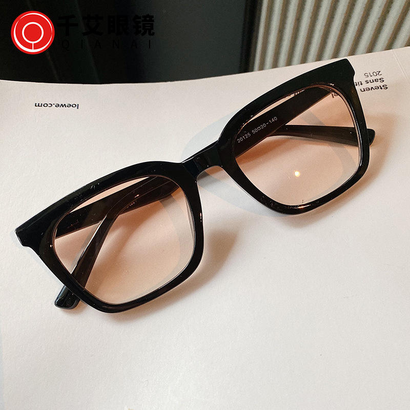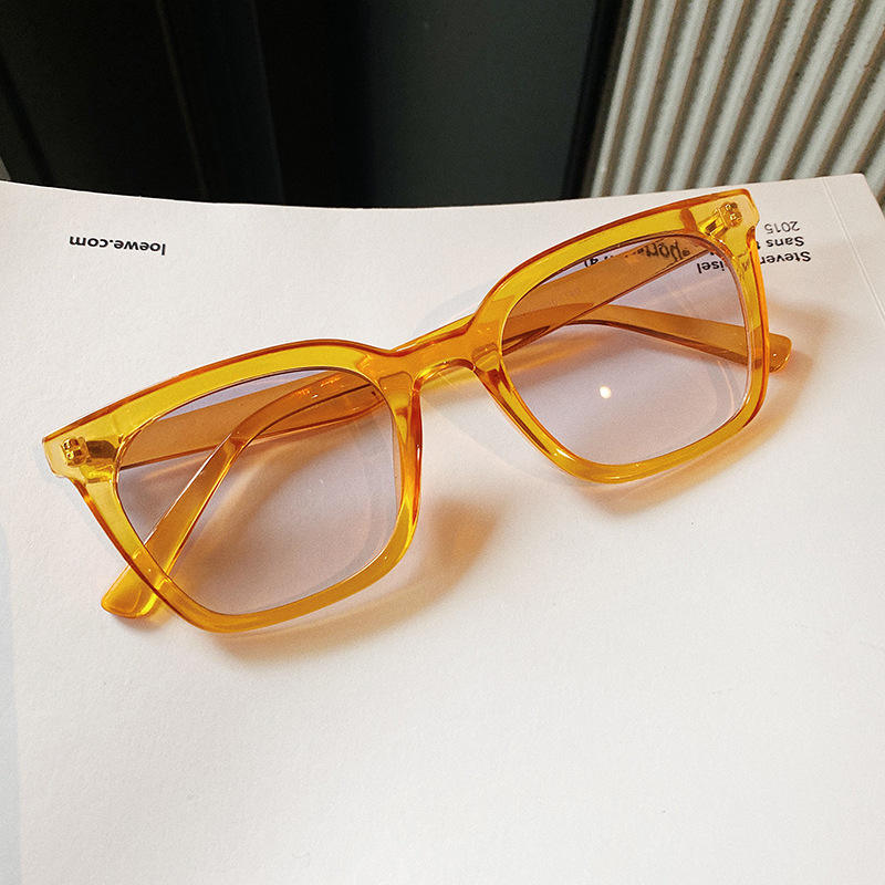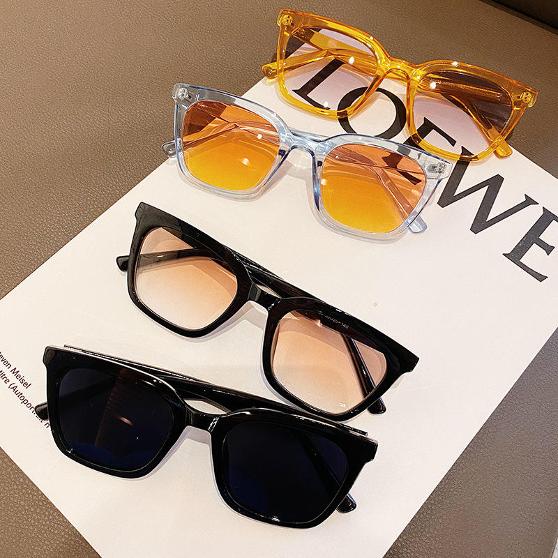 แว่นกันแดดผู้หญิงสไตล์เกาหลีกรอบสี่เหลี่ยมเล็ก UV400 PC เลนส์ไล่ระดับสีฟ้าประเภท 3 ที่บังแดด