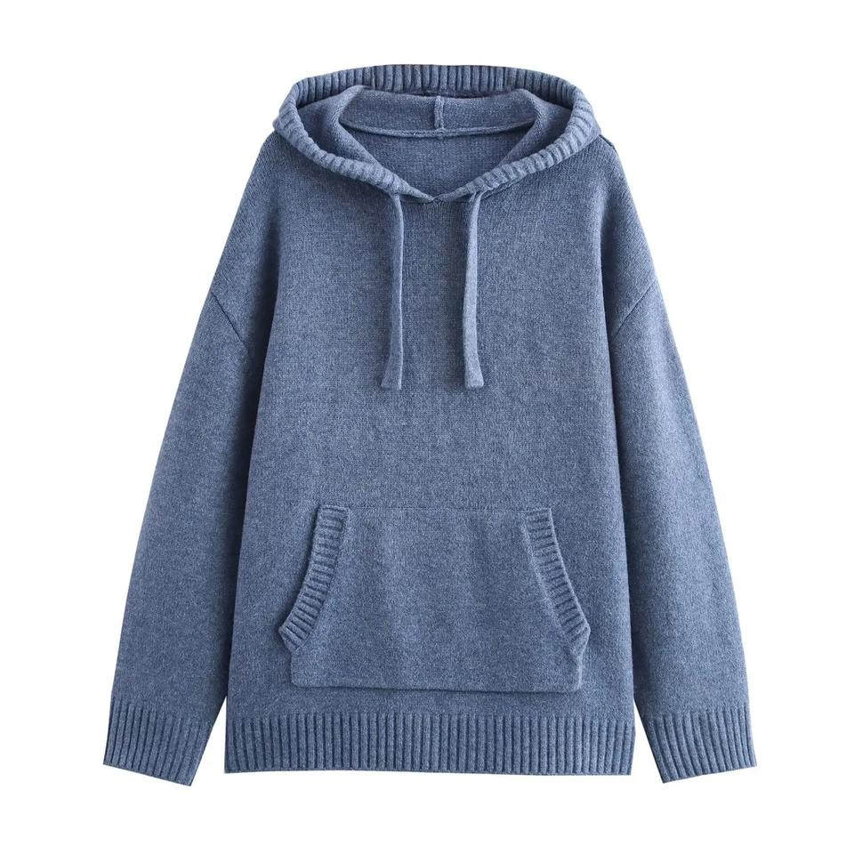 เสื้อผ้าผู้หญิงสไตล์เกาหลีแบบใหม่มีฮู้ดแบบหลวมมีกระเป๋าแขนยาวมีเชือกผูก