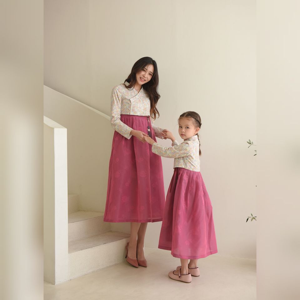 Korean Style / Women's Hanbok / Flower Pattern/ fusion / Long Sleeves/ V-neck