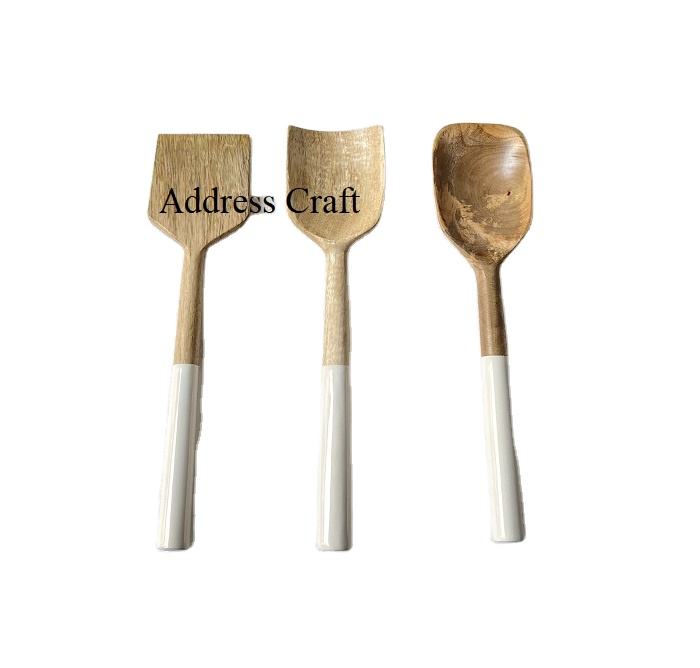 ชุดชีสด้ามไม้สไตล์เกาหลีด้ามเรซินสีขาว3ชิ้นหรูหราบ้านโรงแรมร้านอาหารชุดเครื่องใช้บนโต๊ะอาหารคุณภาพสูง
