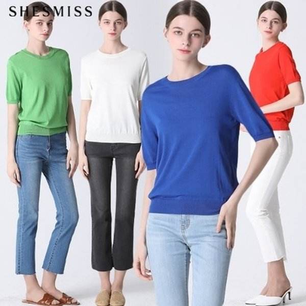 เสื้อถักสวมหัวคอกลมของผู้หญิงเสื้อถักสวมหัวสวมใส่สบายฉลากช้อปปิ้งทีวีเกาหลี