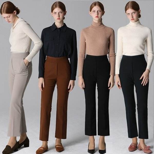 Korean TV Shopping Label Vietnam Design High Tension Flare Fit Banding Pants Set of 4 Women's Clothing Collection