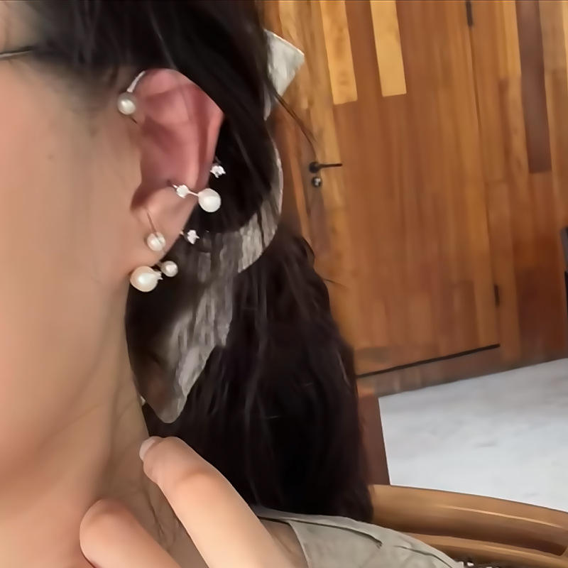ต่างหูเงินรูปหางปลาประดับมุกสไตล์เกาหลี ดีไซน์ใหม่ปี 2025 อเนกประสงค์และมีเอกลักษณ์เฉพาะตัว