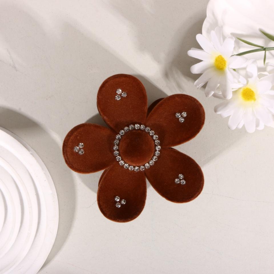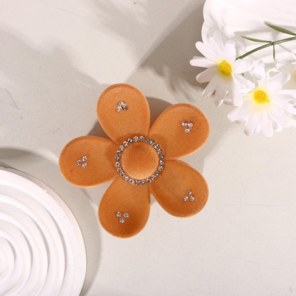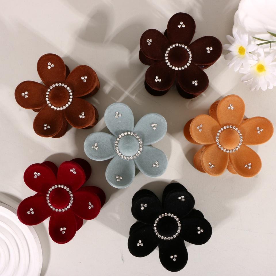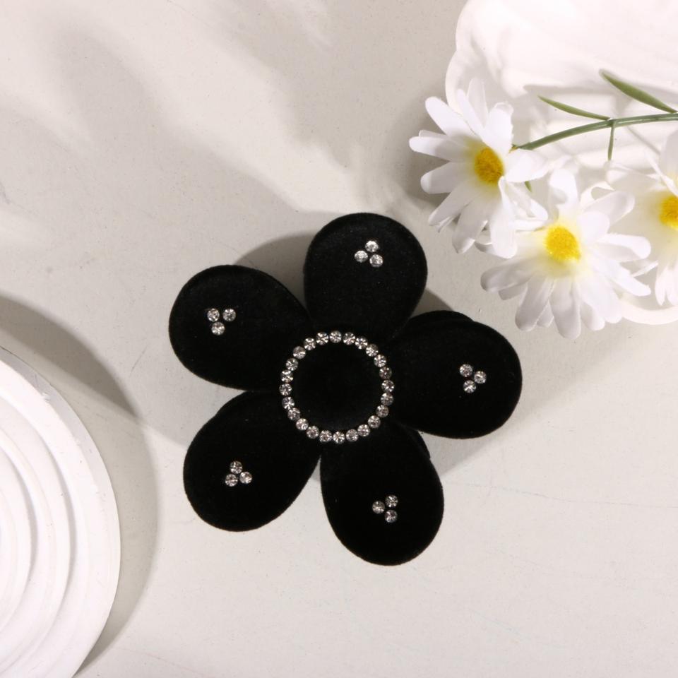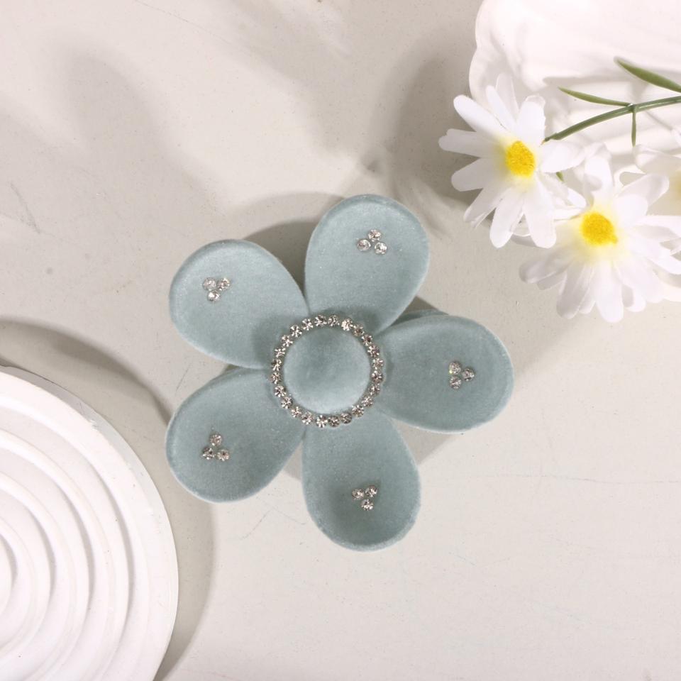 กิ๊บติดผมกำมะหยี่สไตล์ยุโรป-อเมริกันประดับดอกไม้ พร้อมคริสตัลวิบวับ กิ๊บหนีบผมพลาสติกทรงฉลามสำหรับเด็กผู้หญิง
