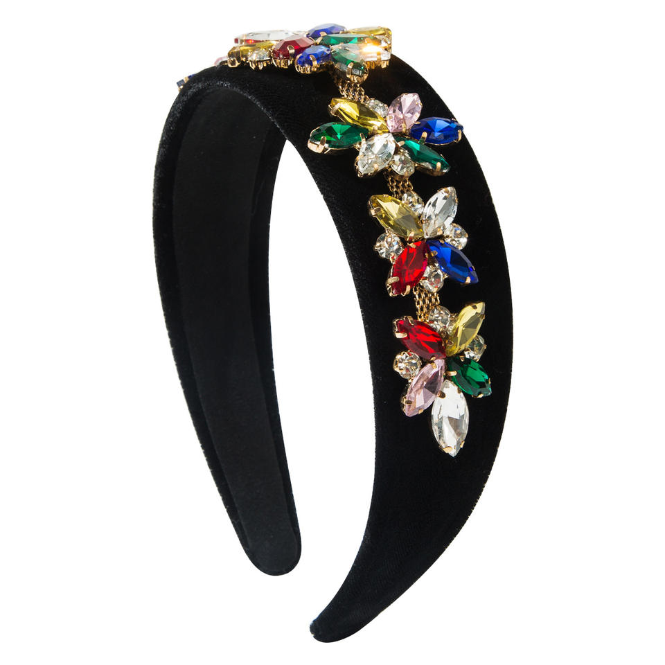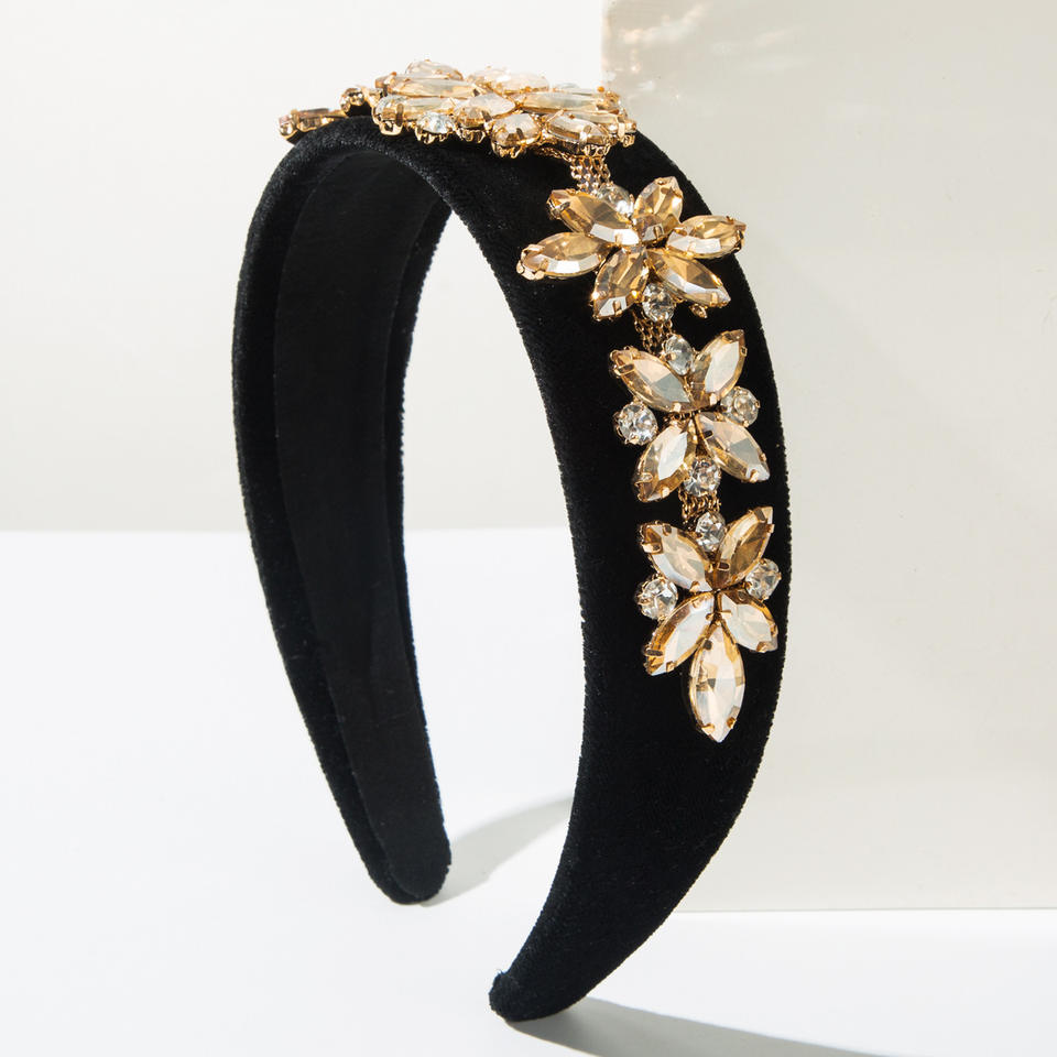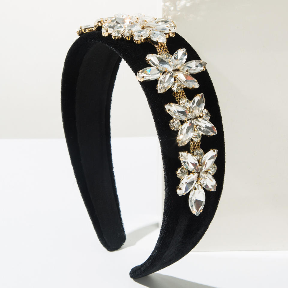 ที่คาดผมกำมะหยี่ประดับเพชรแบบเกาหลีสำหรับผู้หญิง เครื่องประดับผมลายดอกไม้สไตล์บาโรก เครื่องประดับผมคริสตัลหรูหราสำหรับเจ้าสาว