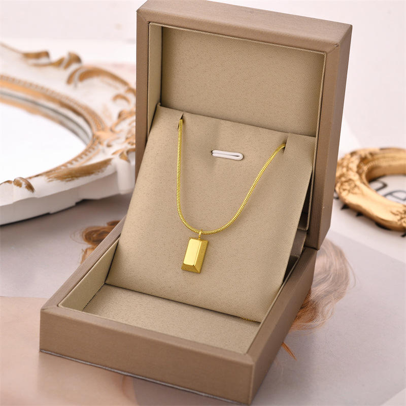 Korean Version Cool Style Titanium Steel Small Gold Brick Pendant Necklace Popular Fashion Accessories with Niche Design