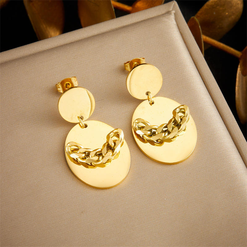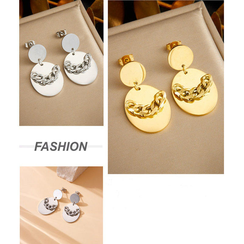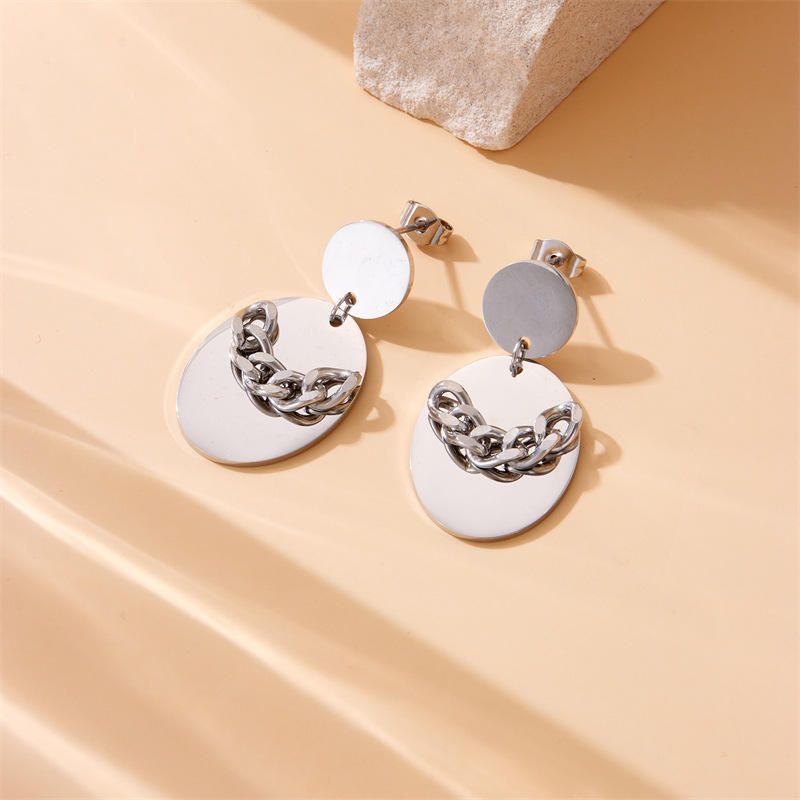 ต่างหูวงรีทรงเรขาคณิตแบบเกาหลีต่างหูห่วงโซ่ดีไซน์แบบเฉพาะของตกแต่งจี้