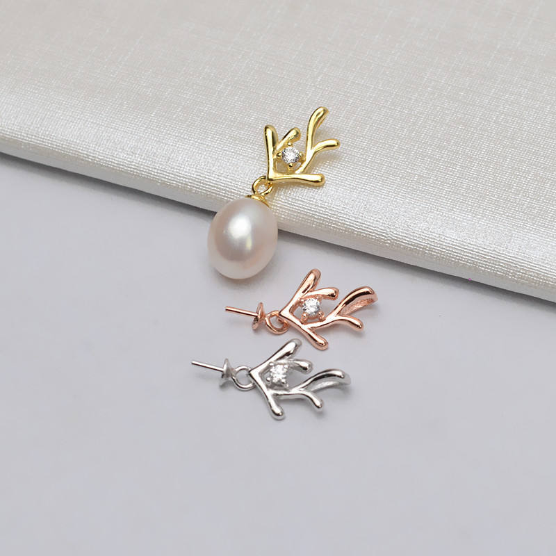 จี้เขากวางเงินแท้ S925 รุ่นใหม่สไตล์เกาหลี พร้อมสร้อยคอไข่มุก 7-12 เม็ด สำหรับผู้หญิงใส่ไปงานปาร์ตี้