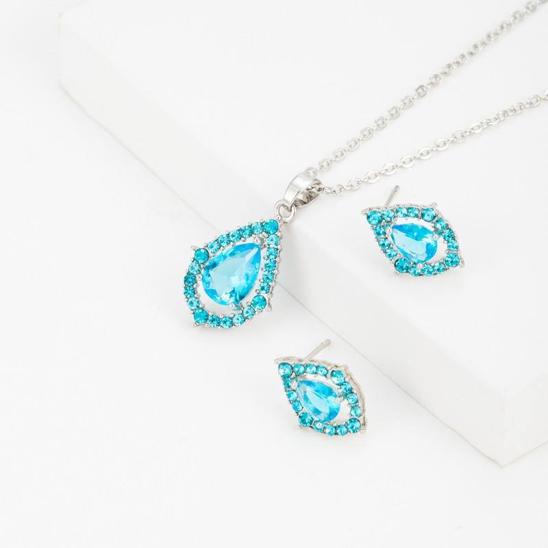 ชุดเครื่องประดับสร้อยคอและต่างหูทรงหยดน้ำประดับเพชรซิคอนสไตล์เกาหลี เหมาะสำหรับงานแต่งงาน ของขวัญ งานปาร์ตี้ และสวมใส่ในชีวิตประจำวัน