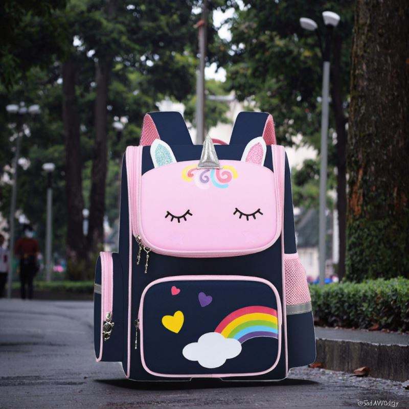 กระเป๋าเป้นักเรียนโพลีเอสเตอร์กันน้ำสไตล์เกาหลีสำหรับผู้หญิงและเด็กกระเป๋าเดินทางความจุขนาดใหญ่ลายการ์ตูน
