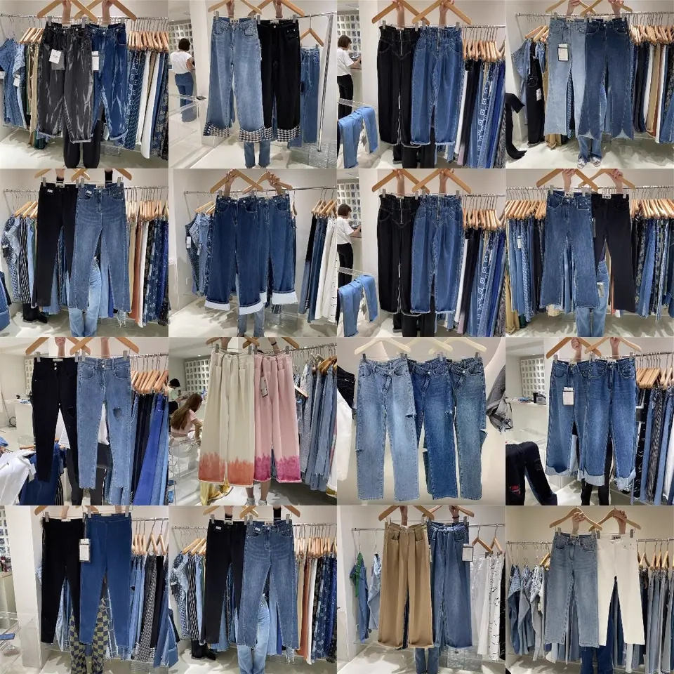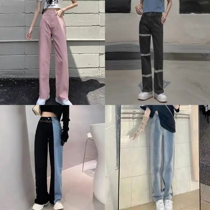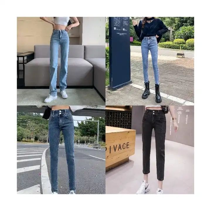 กางเกงฮาเร็มเอวสูงของผู้หญิงสไตล์เกาหลีใส่สบาย, กางเกงคุณแม่กางเกงผ้ายีนส์ระบายอากาศได้ดีสีพื้นตรงทันสมัย