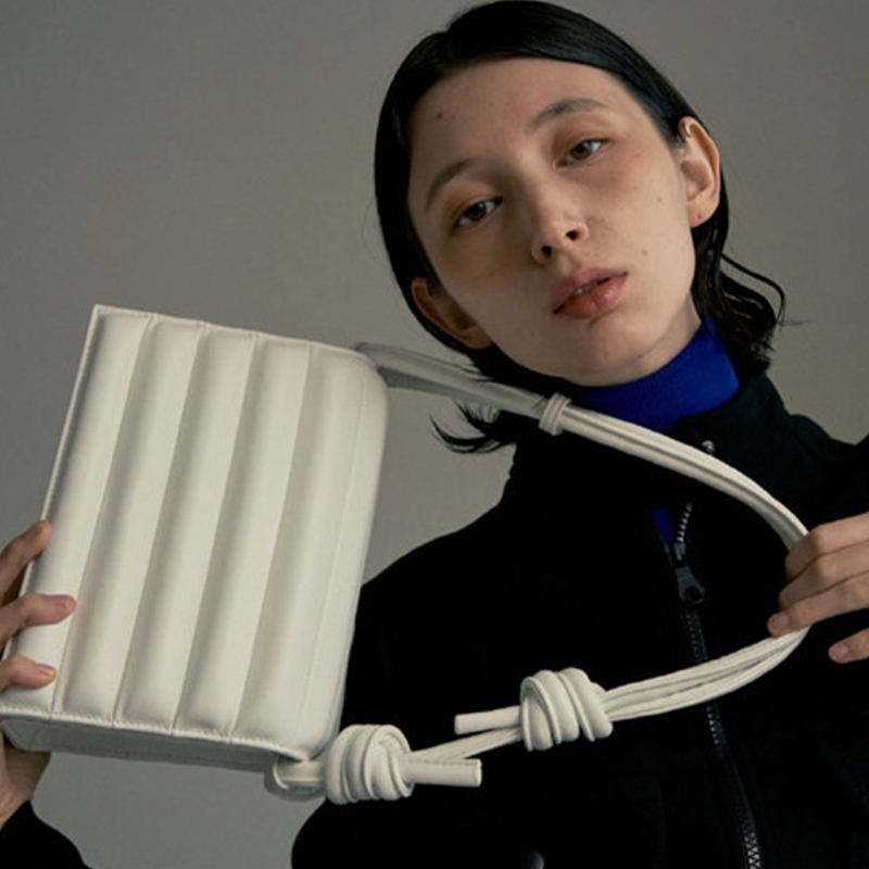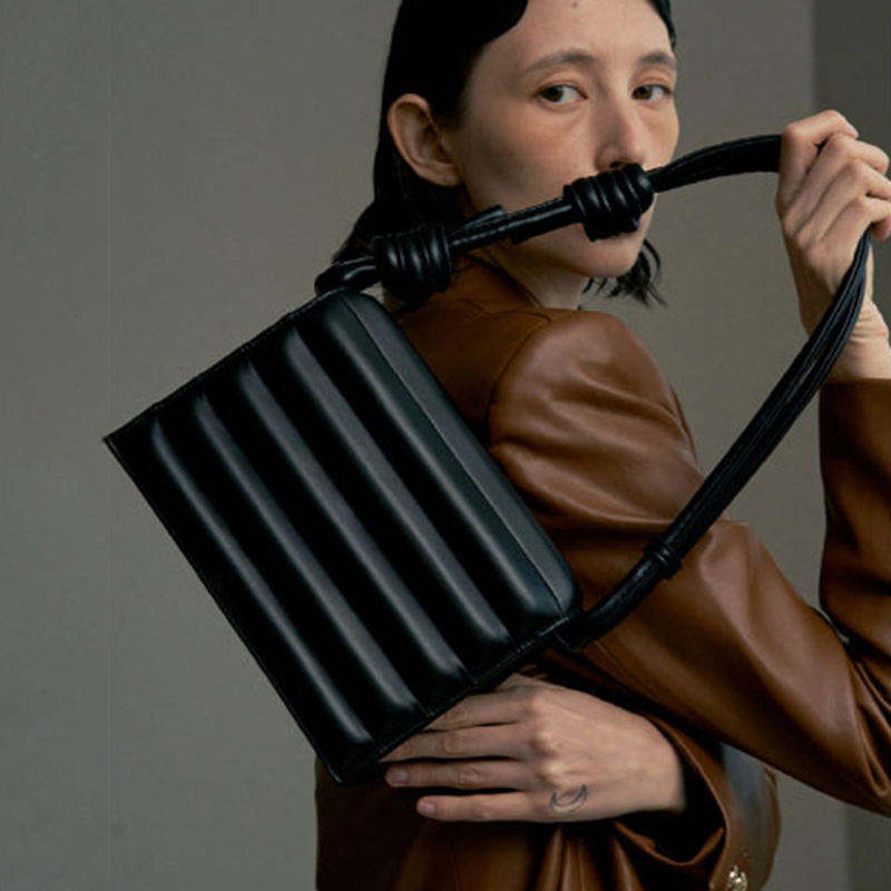 กระเป๋าสะพายไหล่ทรงสี่เหลี่ยมเล็ก ดีไซน์เกาหลี ลายทาง พร้อมสายสะพายแบบผูกปม มีพื้นผิวสัมผัสทันสมัย ใช้สะพายใต้แขนได้