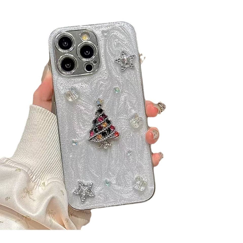 เคสไอโฟน 17/16 Pro Max ลายต้นคริสต์มาส 3 มิติ สไตล์เกาหลี แบบอีพ็อกซี่ สำหรับรุ่น 15/14 ดีไซน์หรูหรา