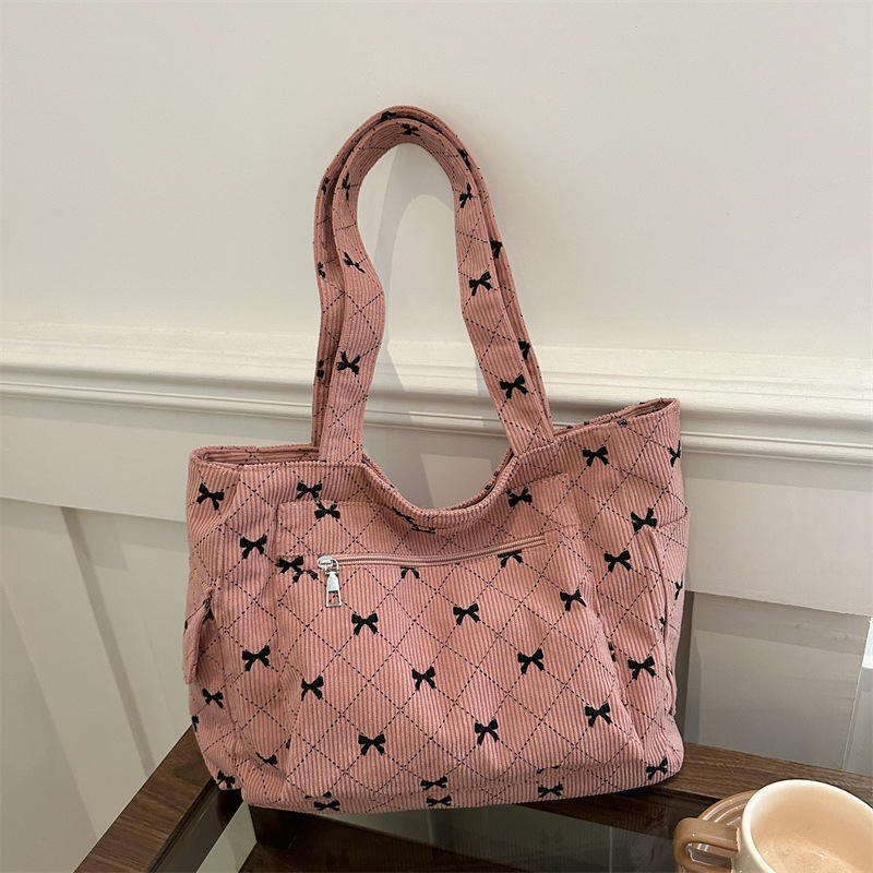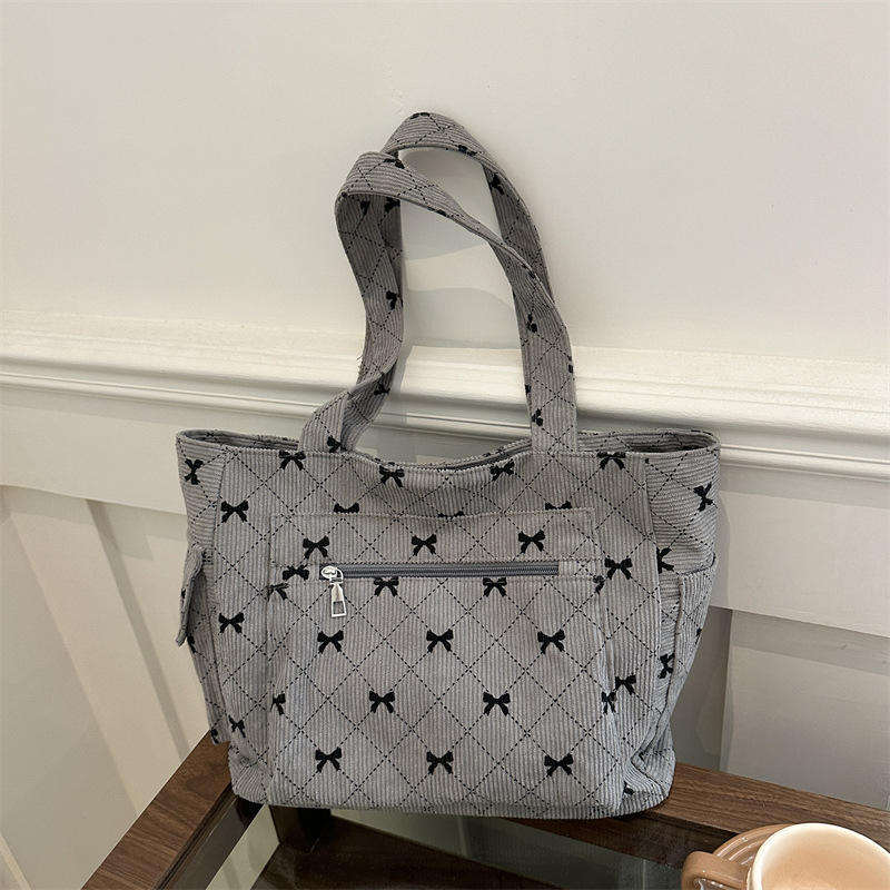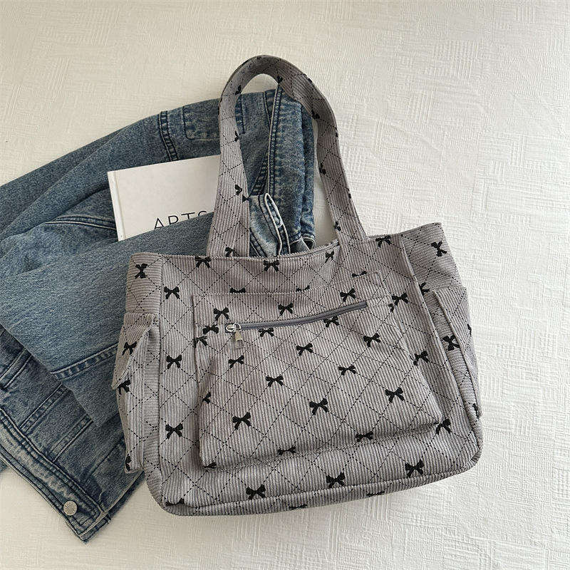 กระเป๋าถือผ้าลูกฟูกสไตล์เกาหลีสุดเก๋ กระเป๋าสะพายไหล่โพลีเอสเตอร์ลายผีเสื้อแบบใหม่พร้อมซิป