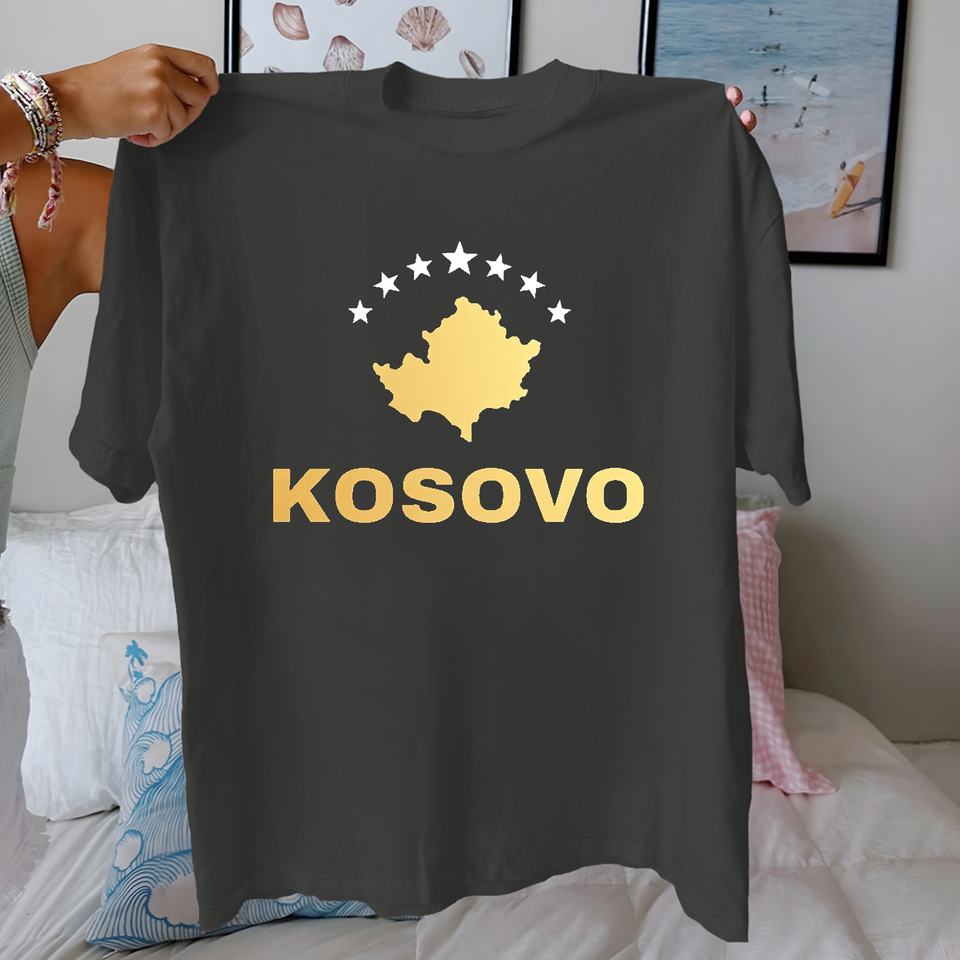 เสื้อยืดคอกลมลายแผนที่โคโซโวสำหรับผู้หญิงทำจากผ้าฝ้ายแท้ใส่สบาย