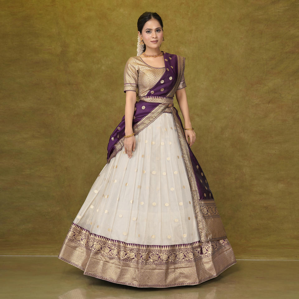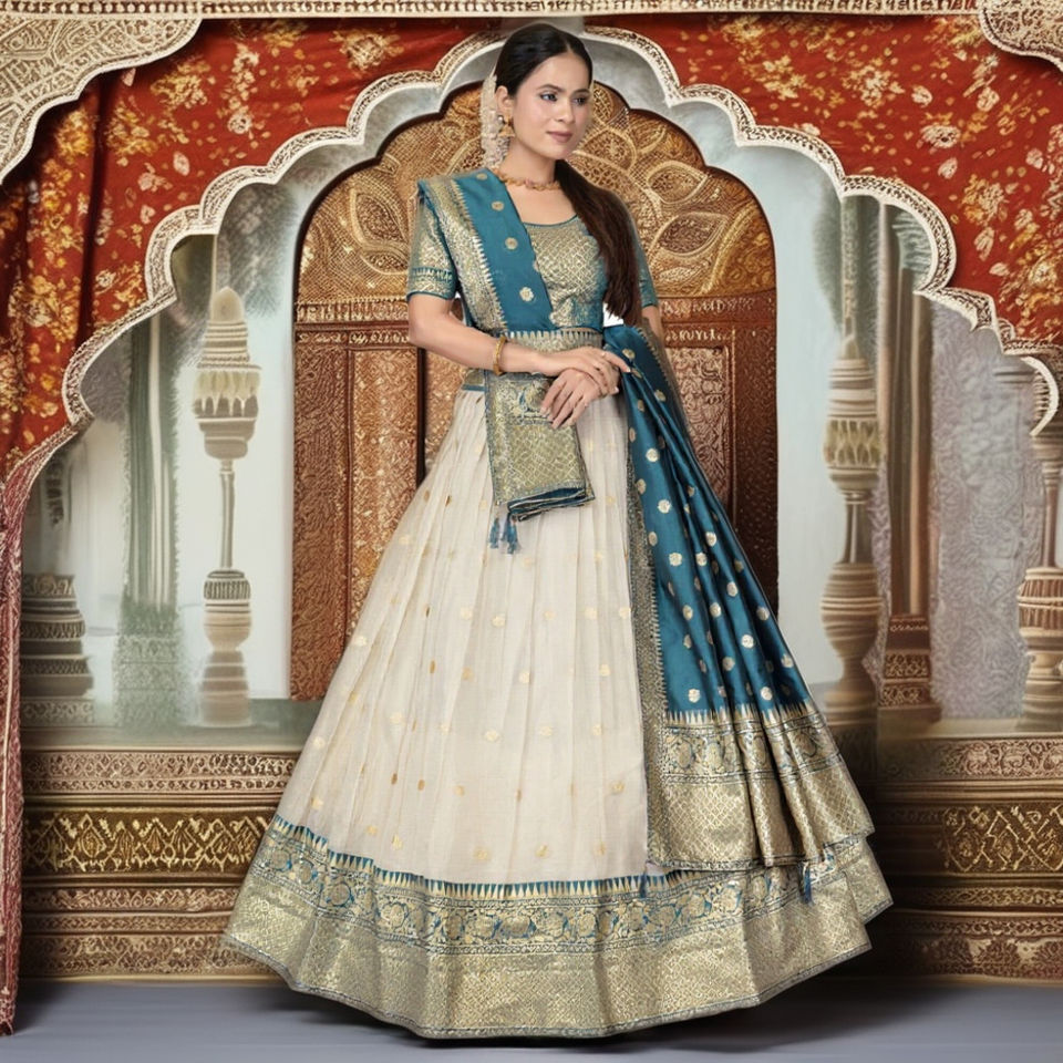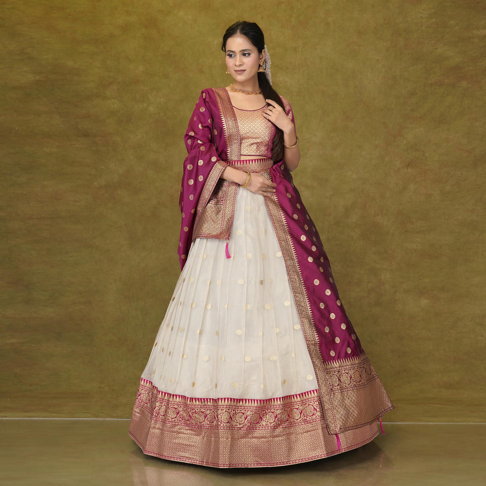 ชุดเลเฮนกาโชลี Kota Chex พร้อมขอบผ้าลายบาเนราซี กระโปรงทรงบานสวยหรู เสื้อทอผ้าอย่างดี ผ้าคลุมไหล่เนื้อดี เหมาะสำหรับงานเทศกาล ชุดพื้นเมือง