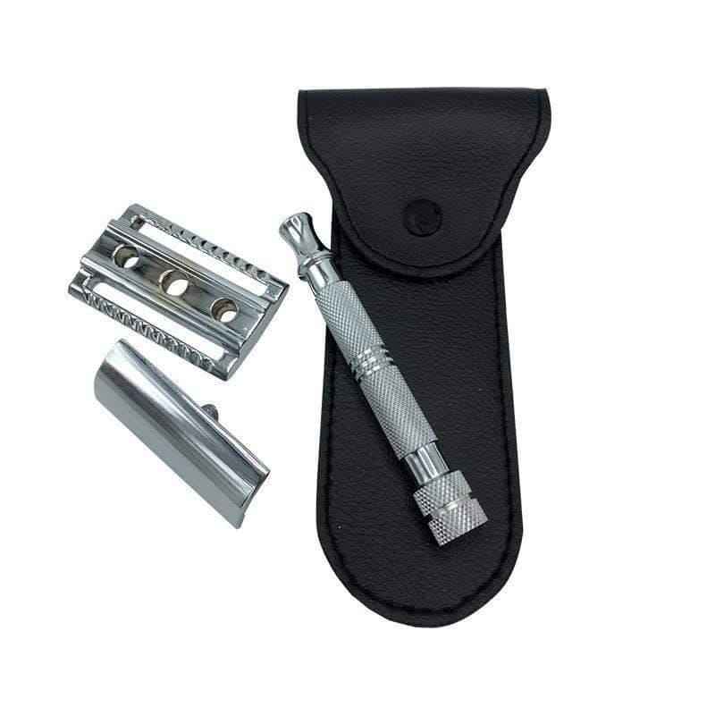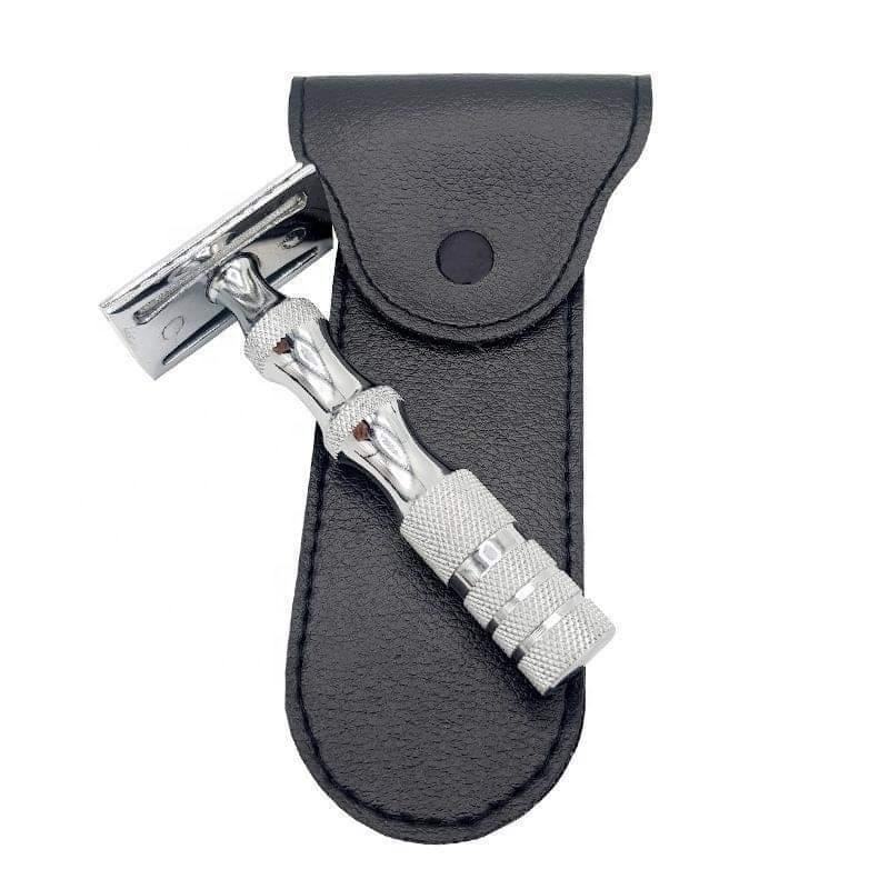 Kounain มีดโกนหนวดแบบขอบคู่ใบมีดเดี่ยวแบบมืออาชีพสำหรับผู้ชายและผู้หญิงด้ามจับไม้ธรรมชาติทนทานใช้โกนหนวดสีแดง