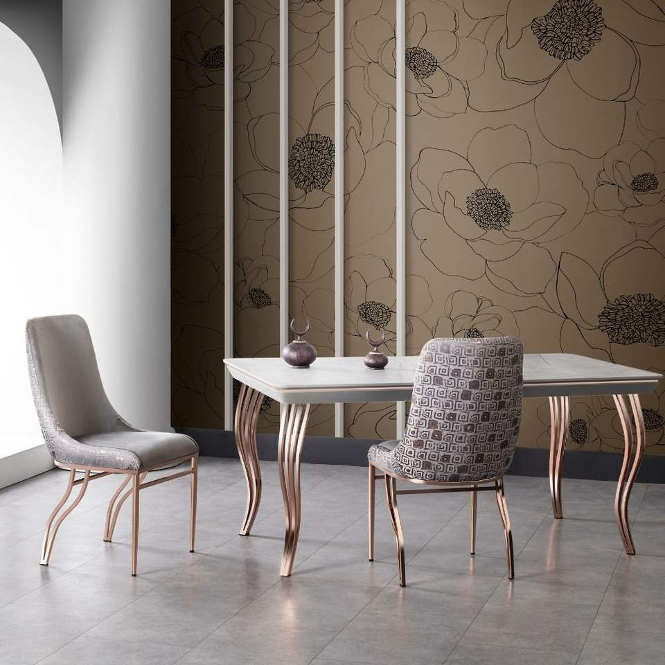 โต๊ะอาหารโคซ่า โมเดิร์น ท็อปหินอ่อน รูปทรงสี่เหลี่ยมผืนผ้า ขาโลหะ ดีไซน์มั่นคง ไม่สามารถพับได้ ผลิตในตุรกี เหมาะสำหรับบ้าน โรงแรม ร้านอาหาร