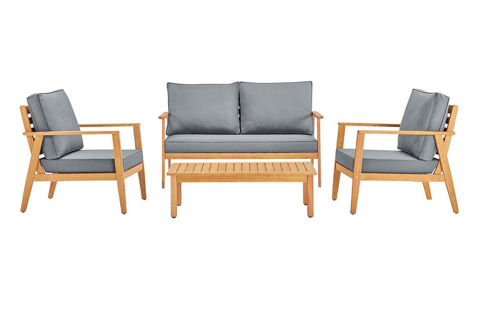 ชุดโซฟาไม้สักแท้สำหรับกลางแจ้ง รุ่นโคซูเมะ พร้อมเบาะกันน้ำ ดีไซน์ทันสมัย ตกแต่งด้วยวัสดุธรรมชาติ เหมาะสำหรับใช้ในร่ม/กลางแจ้ง ห้องนั่งเล่น