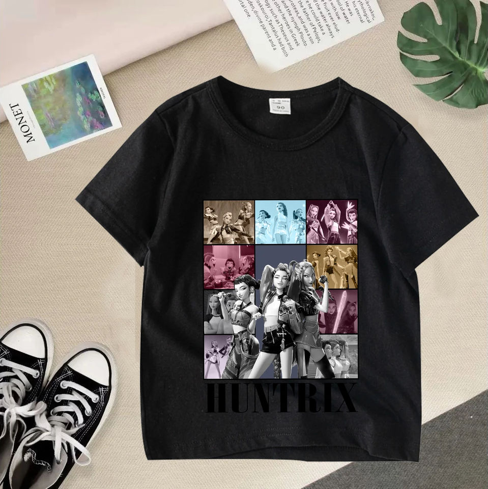 เสื้อยืดแขนสั้นลายนักล่าปีศาจแนว kpop เสื้อยืดลายนักล่าปีศาจเสือฮาราจูกุสุดน่ารักสำหรับเด็กผู้ชายเด็กผู้หญิง