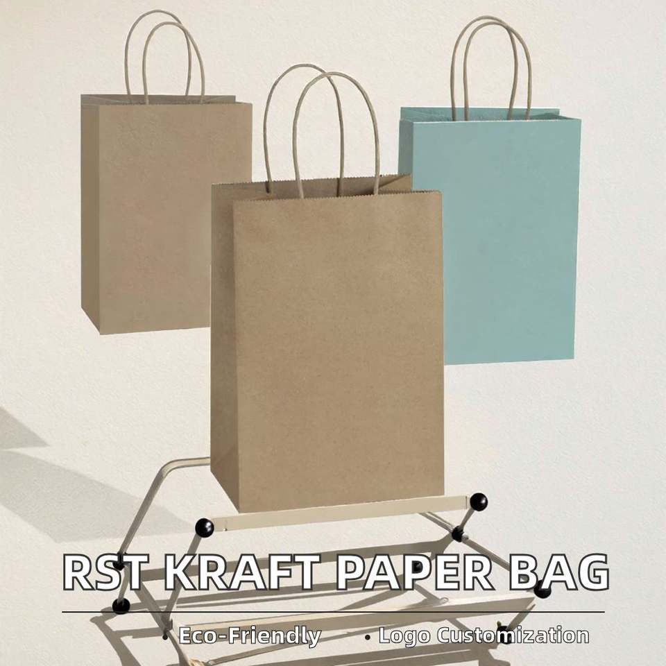 ถุงกระดาษคราฟท์พร้อมหูหิ้วกันขโมย สำหรับบรรจุภัณฑ์อาหารแบบนำกลับและส่งถึงที่ สำหรับภาชนะบนโต๊ะอาหาร หมอน และสินค้าในครัวเรือน