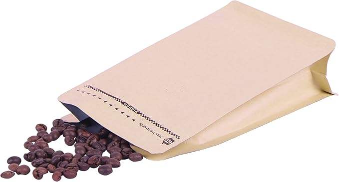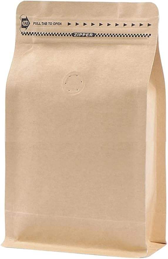 ถุงกาแฟกระดาษคราฟท์ถุงอลูมิเนียมฟอยล์กั้นสูงวัสดุลามิเนตด้านล่างแบนพร้อมซิปวาล์ว
