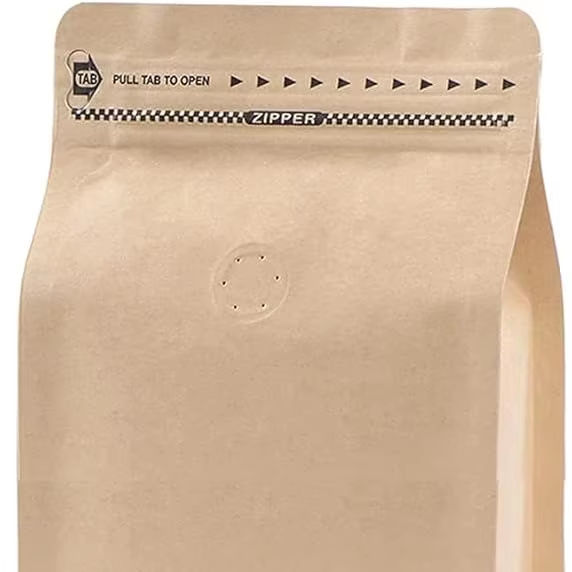 ถุงกาแฟกระดาษคราฟท์แบบตั้งได้ ผลิตโดยตรงจากโรงงาน พร้อมวาล์วระบายอากาศ วัสดุ PE ใช้แล้วทิ้ง ขนาดปรับแต่งได้ MOQ ต่ำ